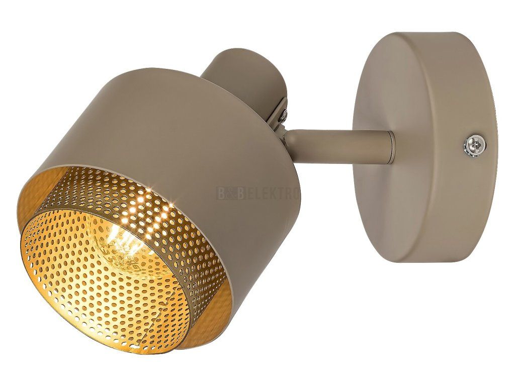 Moderní bodové svítidlo Fedora bude skvělým kouskem zařízení vašeho obývacího pokoje nebo ložnice. Toto celokovové nástěnné svítidlo vyrobené ze světle hnědé a zlaté barvy lze připevnit na zeď pomocí okrouhlé dekorativní základny. Jeho zvláštností je perforované, válcovité, zlato obarvené vnitřní stínítko, které přesahuje světlehnědé vnější stínítko. Svítidlo Fedora může být použito s jednou žárovkou s výkonem až 40W. Typ patice je E14. Chcete-li v místnosti vytvořit intimní, útulnou atmosféru, kterou dokonale podporují zlaté prvky tohoto svítidla, vyberte si teplý bílý světelný zdroj. Rozměry bodovéh svítidla Fedora jsou následující: výška 150 mm, šířka 100 mm, vzdálenost od stěny 145 mm, průměr instalace 90 mm. Tento model se dodává bez světelného zdroje.