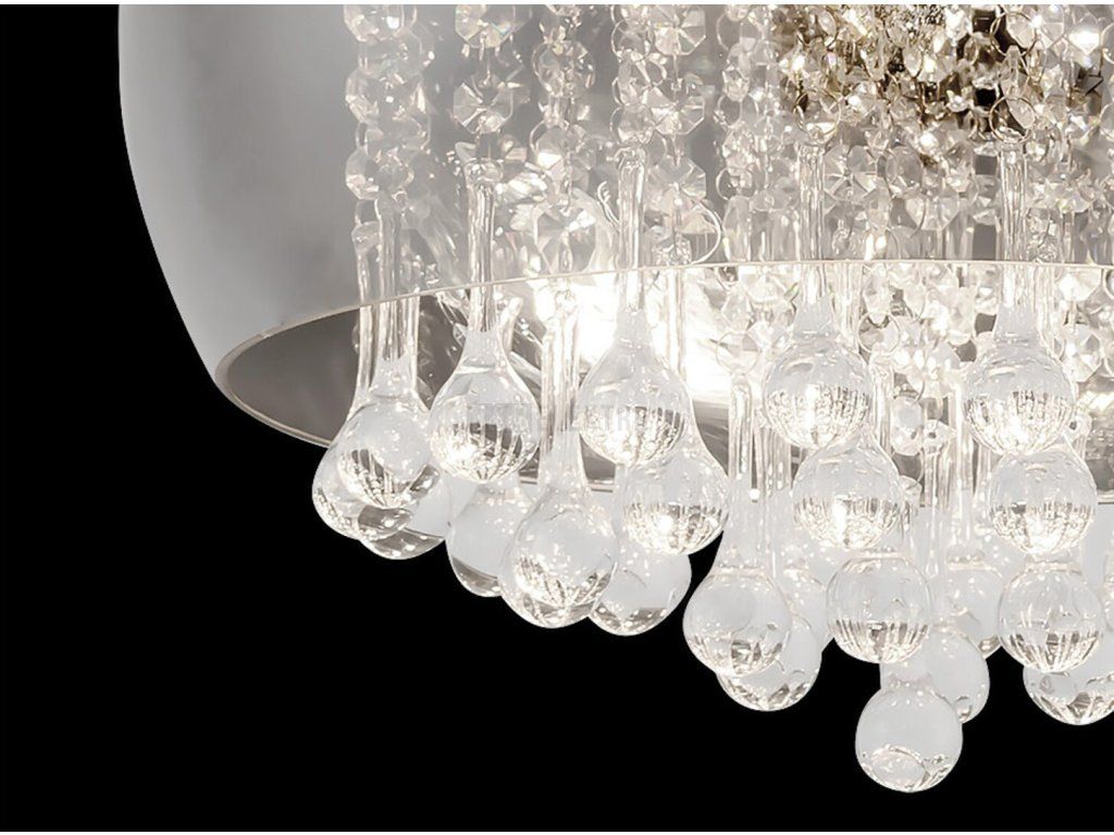 Stropní svítidlo Ninelle, které představuje moderní styl, se doporučuje všem, kteří si rádi zvolí lesklé a elegantní svítidlo ve svém obývacím pokoji nebo ložnici. Kovové svítidlo v chromové barvě doplňuje tónované skleněné stínítko, jehož část zakrývá brilantní dekorace ze skleněného křišťálu. Svítidlo Ninelle je jako speciální šperk visící ze stropu. Tento velkolepý model lze použít se šesti žárovkami, z nichž každá má výkon až 40 W. Typ zásuvky je G9. Podle vašeho vkusu a efektu, který chcete dosáhnout, můžete zvolit teplé nebo přirozené bílé světelné zdroje. Rozměry stropního svítidla Ninelle jsou následující: průměr 400 mm, vzdálenost od stropu 325 mm, montážní průměr 250 mm. Tento model se dodává bez světelných zdrojů.