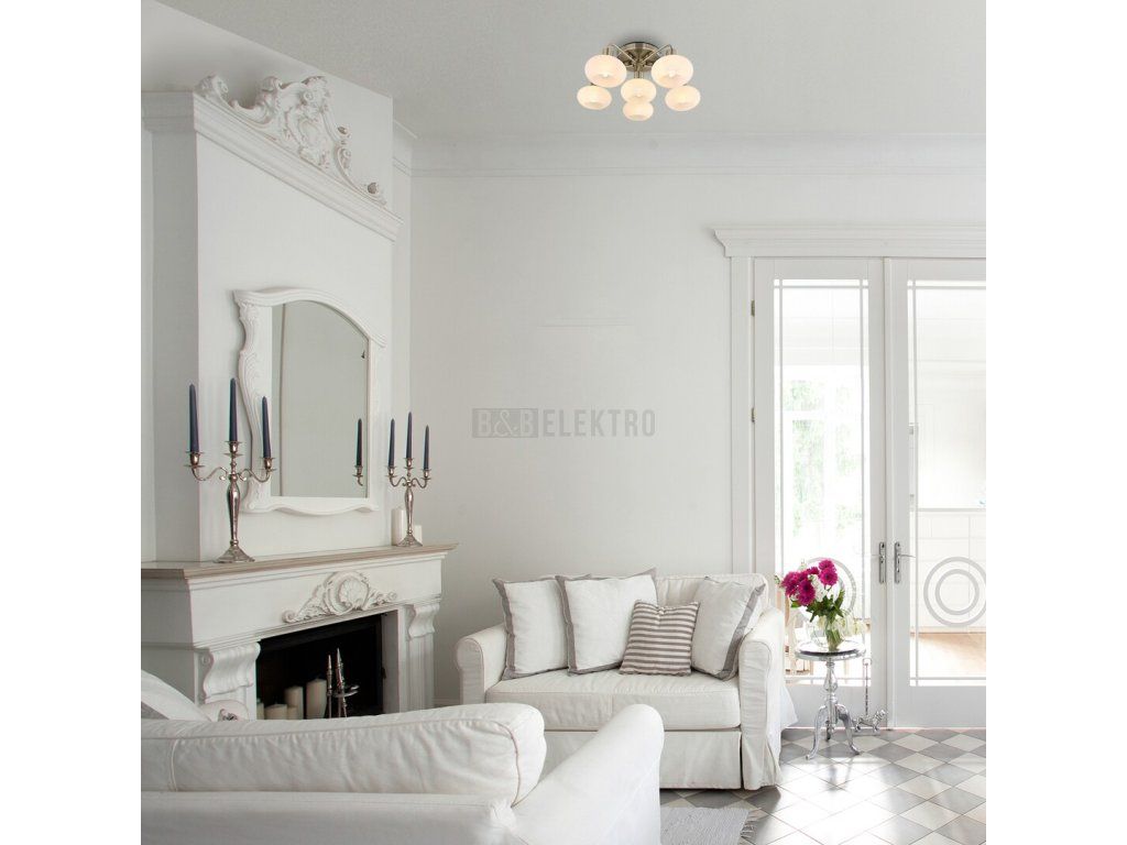 Závěsné svítidlo Sorina v klasickém stylu bude typickým a velkolepým nábytkem ve vašem tradičně zařízeném obývacím pokoji nebo ložnici. Tento model, který se skládá z kovového svítidla starožitné bronzové barvy a stínítka z bílého skla, je možné připevnit ke stropu pomocí čtvercového ozdobného podstavce. Čtyři hlavy svítidla jsou umístěny vedle sebe na dlouhé nosné tyči; stínidla mají charakteristický tvar a jsou ve spodní části otevřené. Výšku tohoto závěsného svítidla lze nastavit mezi 750 a 1 720 mm. Svítidlo lze použít se čtyřmi žárovkami, z nichž každá má výkon až 40W. Typ patice je E14. Pokud chcete vylepšit intimní a útulnou atmosféru, vyberte si pro toto svítidlo teplé bílé světelné zdroje. Rozměry závěsného svítidla Sorina jsou následující: šířka 830 mm, průměr každého stínítka je 140 mm, instalační průměr 260 mm. Tento model se dodává bez světelných zdrojů.