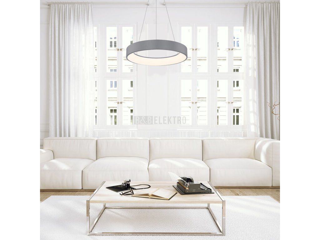 Kulaté závěsné svítidlo Adeline v minimalistickém stylu bude zvláštním doplňkem vašeho moderního obývacího pokoje, ložnice nebo dokonce nábytku vaší pracovny. Šedé svítidlo s bílým stínítkem má množství skvělých funkcí: je možné ho ztlumit, jas lze podle přání měnit pomocí dálkového ovladače a jeho barevnou teplotu je také možné nastavit v rozmezí 3000 - 6000 K pomocí nástěnného vypínače nebo dálkového ovládání. To znamená, že toto závěsné svítidlo může dle vašeho výběru svítit teplým, přirozeným nebo studeným bílým světlem. Svítidlo Adeline, které je vyrobeno z kovu se zaoblenými rohy a akrylovým stínidlem, má také funkci nočního světla a paměťovou funkci, kterou je možné ovládat pomocí nástěnného vypínače nebo dálkového ovladače. Vestavěný LED zdroj světla má výkon 24 W, světelný tok 1 500 lumenů a životnost 20 000 hodin. Závěsné svítidlo Adeline má průměr 450 mm, výšku 85 mm a instalační průměr 200 mm. Vzdálenost od stropu je 1215 mm.
