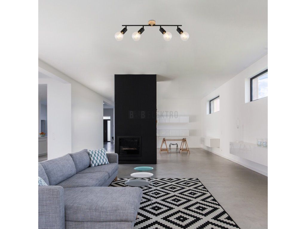 Bodové svítidlo Pablo se 4 žárovkami v průmyslovém stylu bude charakteristickým kusem zařízení obývacího pokoje, kuchyně, jídelny nebo ložnice. Tento model vyrobený z kovu a dřeva sestává z matného černého svítidla a volně stojících zdrojů světla. Svítidlo lze připevnit ke stropu pomocí okrouhlé dřevěné dekorativní podstavy. Od hlavy svítidla - dva na každé straně - které jsou připevněny k nosné tyči sestávající ze dvou kusů, se dívají různými směry, světlo svítidla Pablo se dostane do každé části místnosti. Bodové svítidlo lze použít se čtyřmi žárovkami, každá s výkonem až 40W. Typ zásuvky je E27. Pokud chcete zvýšit útulnou a intimní atmosféru, zvolte pro toto svítidlo světelné zdroje vyzařující teplé bílé světlo. Rozměry stropního svítidla Pablo se 4 žárovkami jsou následující: šířka 720 mm, výška 125 mm, vzdálenost od stropu 110 mm, montážní průměr 90 mm. Tento model je dodáván bez světelných zdrojů.
