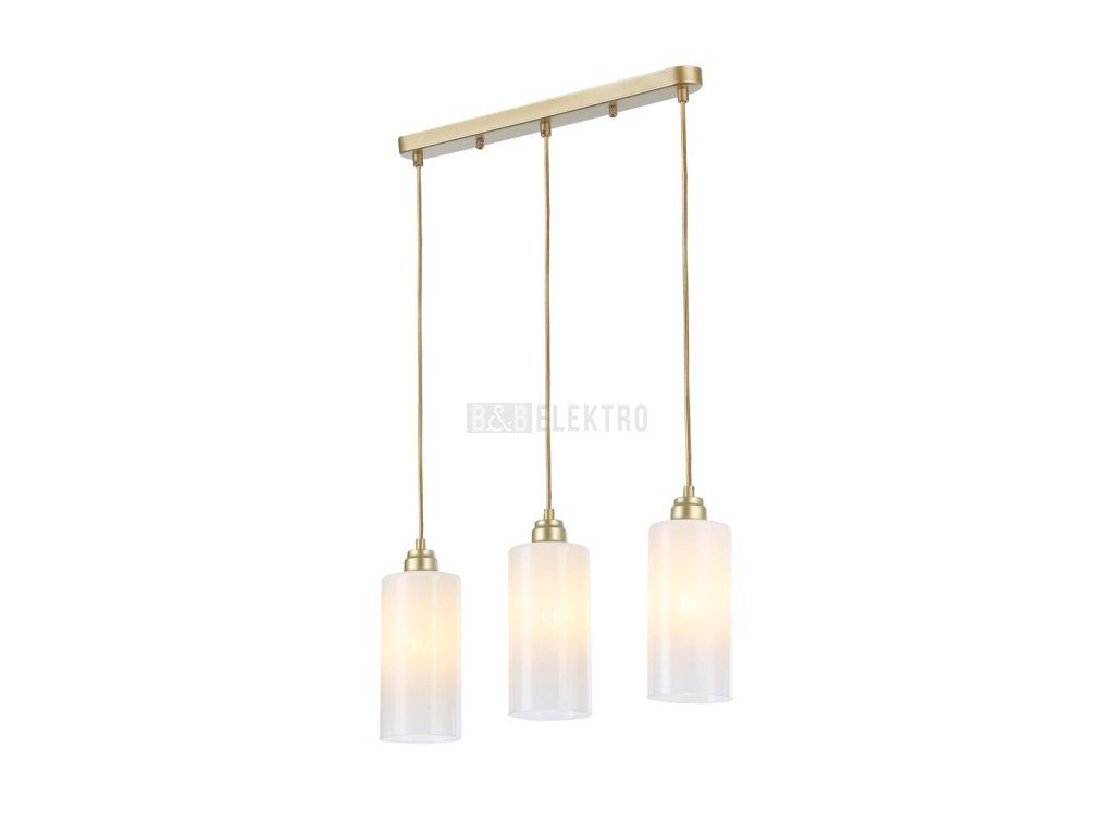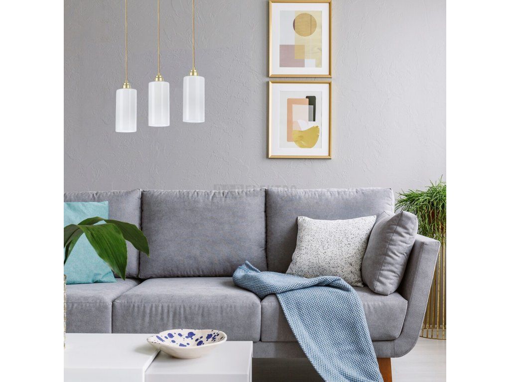 Trojité závěsné svítidlo Panthea, které představuje moderní styl, bude zdrženlivým a elegantním doplňkem k zařízení vašeho obývacího pokoje, jídelny nebo kuchyně. Zlaté svítidlo je doplněno poloprůhlednými bílými stínítky; svítidlo je možné připevnit na strop pomocí prodlouženého ozdobného podstavce se zaoblenými konci. Tři podlouhlé válcovité stínidla, které visí v různých výškách, jsou s dekorativní základnou spojené textilními kabely. Toto závěsné svítidlo je možné použít s třemi žárovkami, z nichž každá má výkon až 40W. Typ patice je E27. Pokud chcete v místnosti dosáhnout moderní a jasný efekt, vyberte si přirozené bílé světelné zdroje. Rozměry trojitého závěsného svítidla Panthea jsou následující: šířka 500 mm, průměr každého stínítka je 100 mm, vzdálenost od stropu 1 700 mm. Tento model se dodává bez světelných zdrojů.