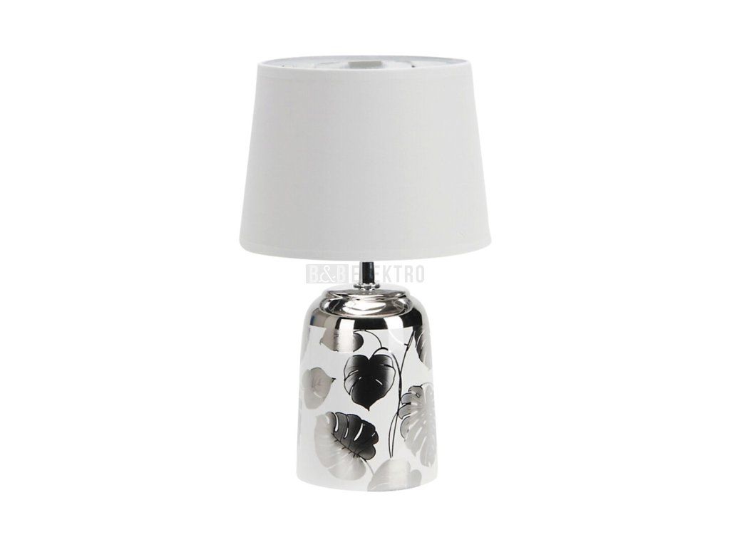 Sonal noční svítidlo bude elegantním doplňkem našeho moderního domu s keramickým podstavcem a textilním stínítkem. Bílý, pevný základ je zdobený stříbrnými motivy listů a je doplněn bílo-stříbrným barevným stínítkem. Sonal může být svěžím místem ve vaší obývacím pokoji nebo ložnici umístěným na nižším stole nebo nočním stolku. Svítidlo lze použít s jednou žárovkou s výkonem až 40 W, patice typu E14. Pokud si lampu dáte do své ložnice, vyberte si žárovku teplé bílé barvy, která vytvoří příjemnou, intimní atmosféru pro vaše večery. Výška svítidla Sonal vybaveného kabelovým spínačem je 300 mm a průměr stínítka je 180 mm. Tento model se dodává bez žárovky.