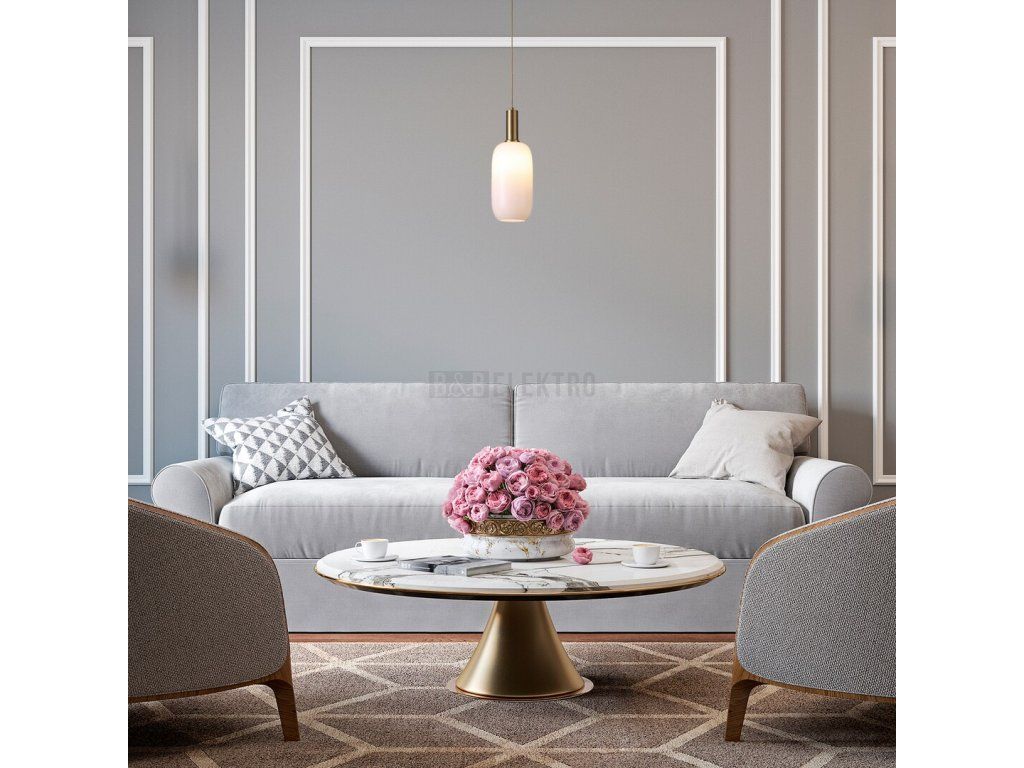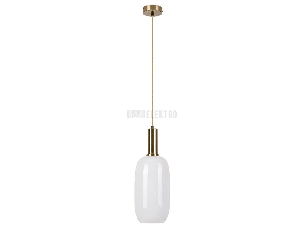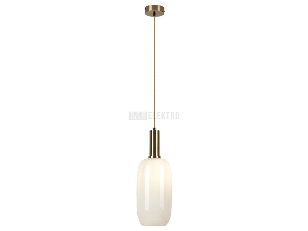 Závěsné svítidlo Sinopia v klasickém stylu bude zdrženlivým a elegantním doplňkem k zařízení vašeho obývacího pokoje nebo ložnice. Zlaté svítidlo je doplněno stínítkem z opálového skla a svítidlo je možné připevnit na strop pomocí malého kulatého ozdobného podstavce. Podlouhlé stínítko ve formě láhve je textilním kabelem spojeno s dekorativní základnou. Toto závěsné svítidlo lze použít s jednou žárovkou s výkonem až 60W. Typ patice je E27. Chcete-li v místnosti vytvořit intimní, útulnou atmosféru, vyberte si pro toto svítidlo teplý bílý světelný zdroj. Rozměry závěsného svítidla Sinopia jsou následující: průměr stínítka je 145 mm, jeho výška je 285 mm, vzdálenost od stropu 1 500 mm, instalační průměr 90 mm. Tento model se dodává bez světelného zdroje.