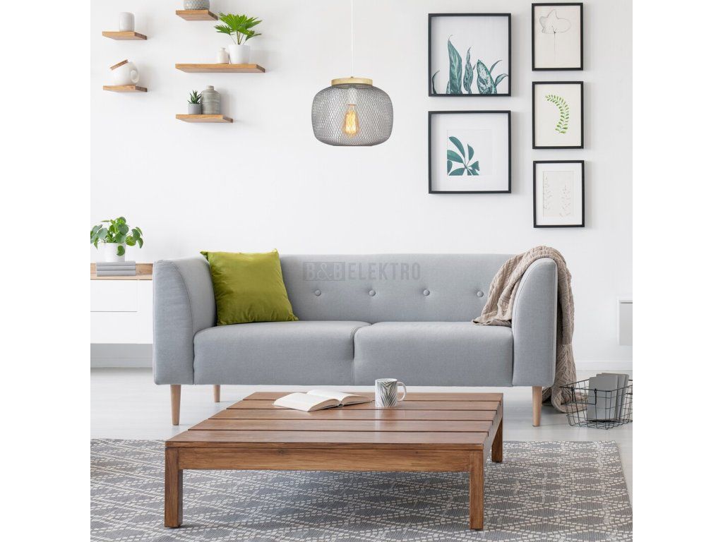 Závěsné svítidlo Rupert doporučujeme milovníkům severského stylu. Toto charakteristické svítidlo může být skutečně útulným doplňkem nábytku do obývacího pokoje, jídelny nebo kuchyně. Zastíněné stínítko tohoto šedého modelu zcela obklopuje zdroj světla. Svítidlo lze připevnit na strop pomocí malého kulatého ozdobného podstavce. Stínítko kovového svítidla je ještě osobitější díky kulatému překrytí, které je vyrobeno z pravého dřeva. Svítidlo Rupert lze použít s jednou žárovkou s výkonem až 40W. Typ zásuvky je E27. Pokud chcete zvýšit intimní a útulnou atmosféru, zvolte pro toto svítidlo zdroj teplého bílého světla. Pokud však chcete vytvořit jasný a moderní efekt, použijte svítidlo se žárovkou vyzařující přirozené bílé světlo. Rozměry tohoto závěsného svítidla jsou následující: průměr 300 mm, výška 230 mm, vzdálenost od stropu 1 500 mm, průměr instalace 100 mm. Tento model je dodáván bez světelného zdroje.