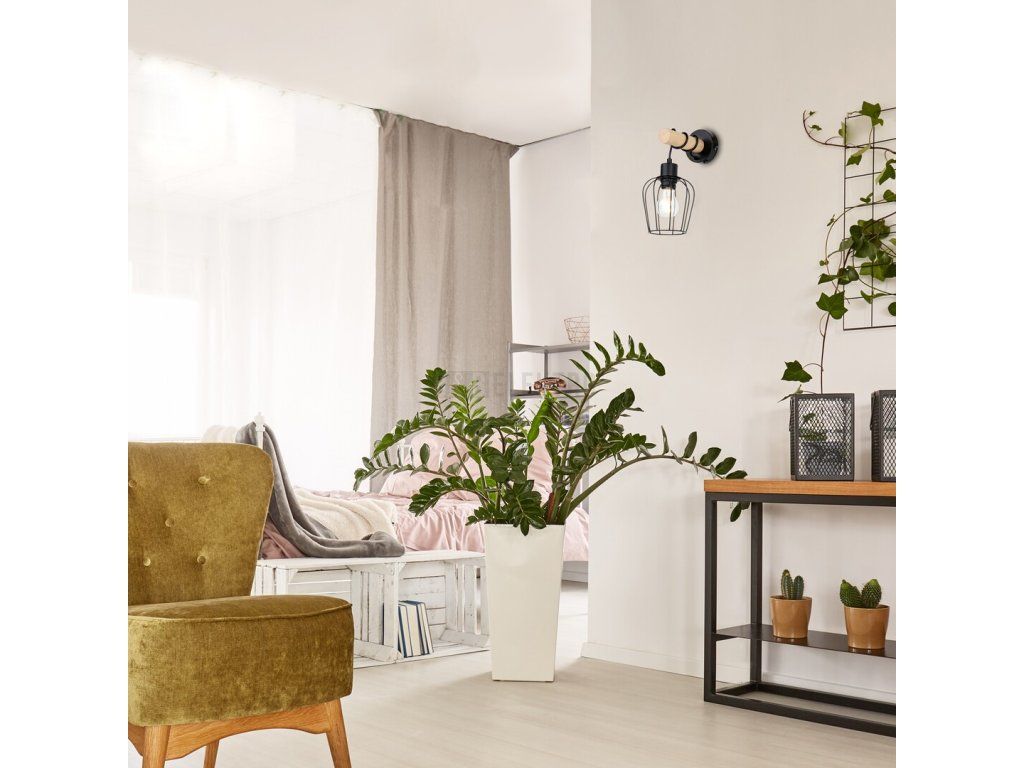 Nástěnné svítidlo Fabian v průmyslovém stylu bude jedinečným kouskem nábytku do obývacího pokoje, jídelny, kuchyně nebo dokonce do ložnice. Tento model sestávající z matného černého svítidla a zastíněného stínítka stejné barvy je vyroben z kovu a dřeva. Svítidlo lze připevnit na zeď pomocí okrouhlé ozdobné základny. Ozdobná základna je s stínítkem propojena kabelem navinutým a schovaným v dřevěném válci, který dodává tomuto modelu surový, přirozený vzhled. Světlo bez překážek proudí zpod stínítka připomínajícího klec. Svítidlo Fabian je možné používat s jedinou žárovkou s výkonem až 40W. Typ zásuvky je E27. Pokud chcete v místnosti dosáhnout čistý a jasný efekt, vyberte si žárovku vyzařující přirozené bílé světlo. Svítidlo Fabian je možné ovládat pomocí spínače umístěného na ozdobné základně. Rozměry tohoto svítidla jsou následující: šířka svítidla i průměr stínítka je 140 mm, výška žárovky je 300 mm, vzdálenost od stěny 220 mm. Tento model je dodáván bez světelného zdroje.