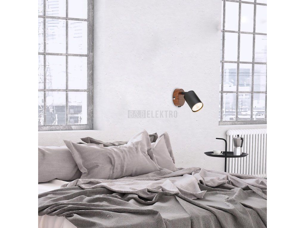 Bodové svítidlo Edmund, které reprezentuje industriální styl, bude stylovým kouskem zařízení vašeho obývacího pokoje nebo ložnice. Kovová hlava svítidla je spojena s kulatou ozdobnou základnou dubové barvy a černé, válcové stínidlo má patici GU10. Toto nástěnné svítidlo lze použít s jednou žárovkou o výkonu až 25W. V závislosti na vašich preferencích si můžete pro svítidlo zvolit teplý nebo přirozený bílý zdroj světla. Pokud svítidlo Edmund umístíte do ložnice, doporučujeme jej použít se žárovkou vyzařující teplé bílé světlo, které vám pomůže vytvořit útulnou, intimní atmosféru. Toto bodové svítidlo lze ovládat pomocí kolébkového spínače na spodní části ozdobného podstavce. Rozměry nástěnného svítidla jsou následující: šířka 80 mm, výška 155 mm, průměr stínítka 55 mm, vzdálenost svítidla od stěny 145 mm, instalační průměr 80 mm. Tento model je dodáván bez světelného zdroje.