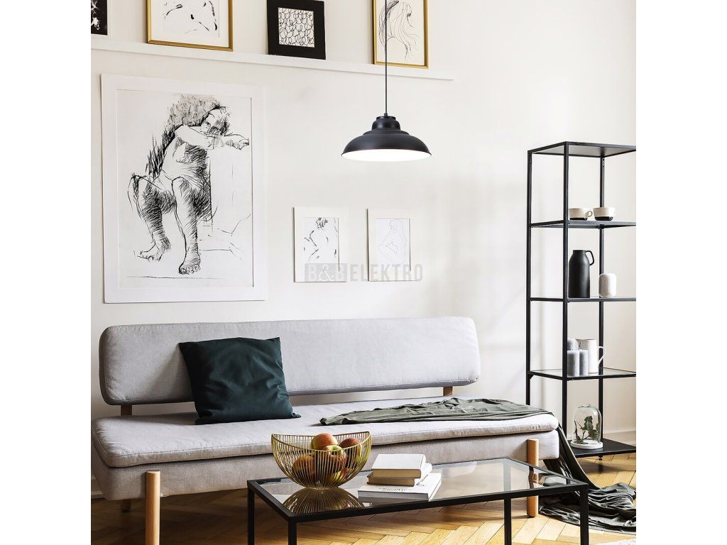 Závěsné svítidlo Dragan, které reprezentuje industriální styl, bude charakteristickým kouskem zařízení vašeho obývacího pokoje nebo ložnice. Matné černé kovové svítidlo je doplněno o široké stínidlo ve tvaru deštníku, které je zevnitř zabarveno na bílo. Svítidlo lze upevnit na zeď pomocí kulatého dekoračního podstavce. Hlava svítidla je s ozdobnou základnou spojena textilní šňůrkou. Svítidlo Dragan lze použít s jednou žárovkou o výkonu až 60W. Typ patice je E27. V závislosti na vašich preferencích si můžete pro toto svítidlo zvolit teplý nebo přirozený bílý zdroj světla. Pokud jej umístíte do ložnice, doporučujeme žárovku vyzařující teplé bílé světlo, které vám pomůže vytvořit útulnou, intimní atmosféru. Průměr závěsného svítidla Dragan je 310mm, vzdálenost od stropu je 1200mm.. Tento model je dodáván bez světelného zdroje.