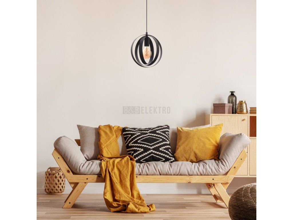 Závesné svítidlo Cortado, které reprezentuje industriální styl, bude skvělou volbou do vašeho moderního obývacího pokoje, jídelny nebo ložnice. 3 kroužky černého železného svítidla, které jsou navzájem otočeny, vytvářejí kolem volně stojícího světelného zdroje tvar koule. Svítidlo lze připevnit ke stropu pomocí malé kulaté dekorativní základny a lze jej použít s jedním světelným zdrojem o výkonu až 40W. Typ patice je E27. Pro závěsné svítidlo Cortado si můžete zvolit zdroj světla vyzařující přirozené nebo teplé bílé světlo. Pokud jej umístíte do ložnice, doporučujeme žárovku vyzařující teplé bílé světlo, které vám pomůže vytvořit útulnou, intimní atmosféru. Rozměry svítidla Cortado jsou následující: průměr 250mm, vzdálenost od stropu 980mm, instalační průměr 120mm.
