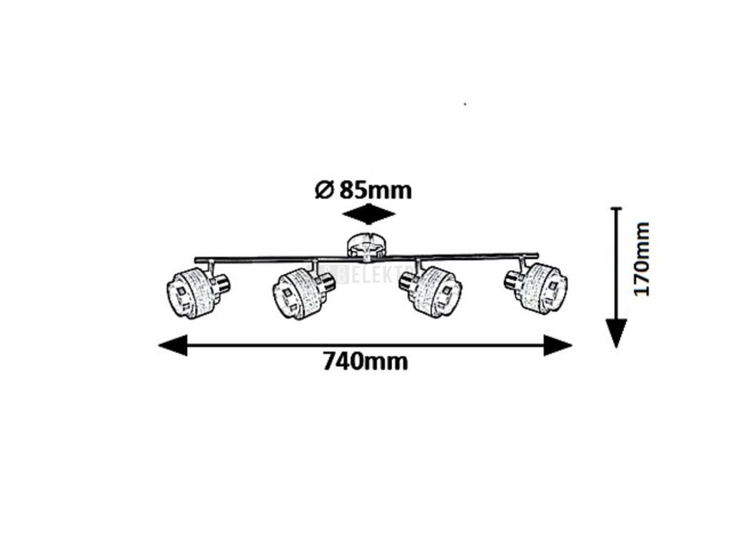 Bodové svítidlo Basil se čtyřmi světly se vyznačuje moderním, elegantním designem a barvami. Kovové a plastové nástěnné svítidlo se svou barevnou kombinací saténově chromově-stříbrný dub je obzvlášť zajímavé hlavou svítidla složené z válcových prvků a stínítkem s krytem v dubové barvě. Hlavy svítidla jsou umístěny na dvou rovných kovových tyčích, které začínají vpravo a vlevo od dekoračního podstavce. Primárně doporučujeme svítidlo Basil používat v prostorných obývacích pokojích, kde ho můžete připevnit buď ke zdrojům teplého nebo přírodního bílého světla, podle toho, jaký efekt chcete dosáhnout. Bodové svítidlo lze použít se čtyřmi světelnými zdroji s výkonem každého do 10 W, patice typu E14. Rozměry svítidla Basil vybaveného kulatým dekorativním podstavcem jsou: šířka 740 mm, vzdálenost od stropu 170 mm. Tento model se dodává bez žárovek.