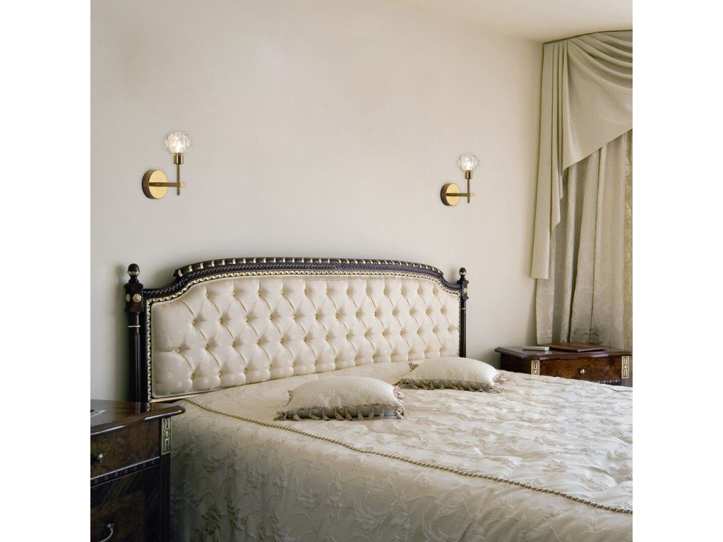 Nástěnné svítidlo Kassia vyrobeno z kombinace kovu a skla se doporučuje těm, kteří hledají elegantní nástěnné svítidlo do své ložnice nebo obývacího pokoje. Kovové tělo zlatého modelu v klasickém stylu se skládá ze dvou částí: zlatý, kulatý dekorativní podstavec a část ramene na stěně je doplněna skleněným stínítkem připomínajícím křišťál. Nástěnné svítidlo Kassia připomíná speciální pochodeň. Tento model je možné použít s energeticky úsporným světelným zdrojem s výkonem až 5 W, patice typu G9. Pokud si ho dáte do své ložnice, vyberte si žárovku teplé bílé barvy, která umocní útulnou, intimní atmosféru. Rozměry nástěnného svítidla Kassia jsou: šířka 200 mm, průměr dekoračního podstavce 95 mm, vzdálenost od stěny 150 mm. Svítidlo se dodává bez žárovky.
