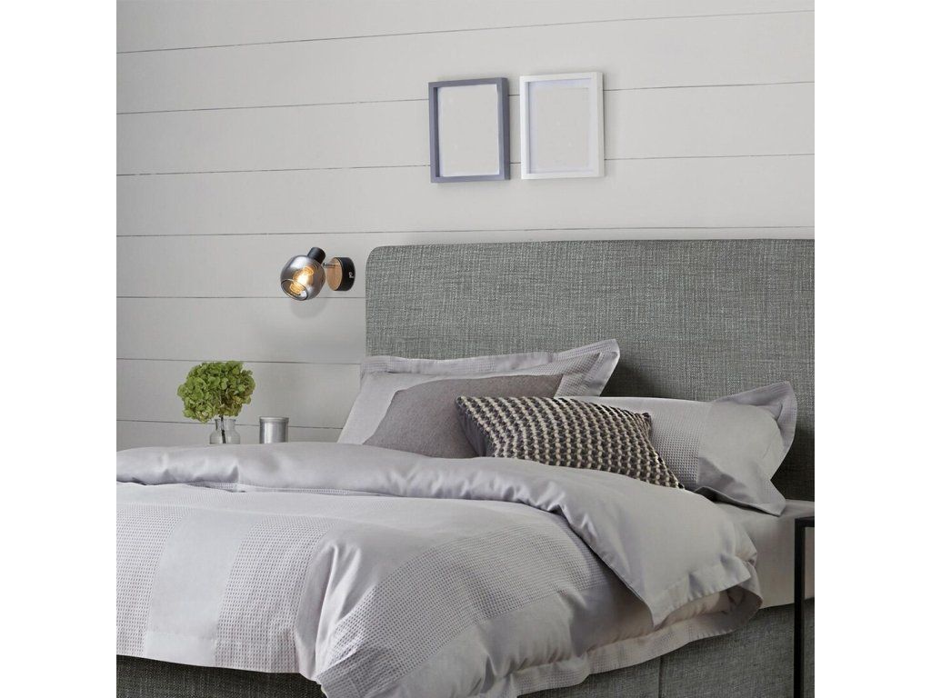 Bodové svítidlo Salazar vyrobeno z kombinace kovu a skla bude svým industriálním stylem charakteristickým doplňkem vaší domácí výzdoby. Doporučujeme ho primárně do ložnice, ale můžete si ho umístit i do obývacího pokoje nebo na chodbu. Černé tělo má dubový vzor a je doplněno kulatým ozdobným podstavcem a skleněným stínítkem v kouřové barvě. Díky pohyblivé hlavě svítidla můžete světlo nasměrovat podle přání. Nástěnné svítidlo je možné použít se žárovkou s výkonem až 40, W patice typu E14. Světlo je jemně filtrované zpod tmavého stínítka svítidla Salazar, z něhož vyzařuje příjemná a útulná atmosféra. Abyste dosáhli dokonalý efekt, doporučujeme jej používat se zdrojem teplého bílého světla. Rozměry svítidla Salazar jsou: šířka 100 mm, výška 80 mm, vzdálenost od stěny 140 mm. Tento model se dodává bez žárovky.