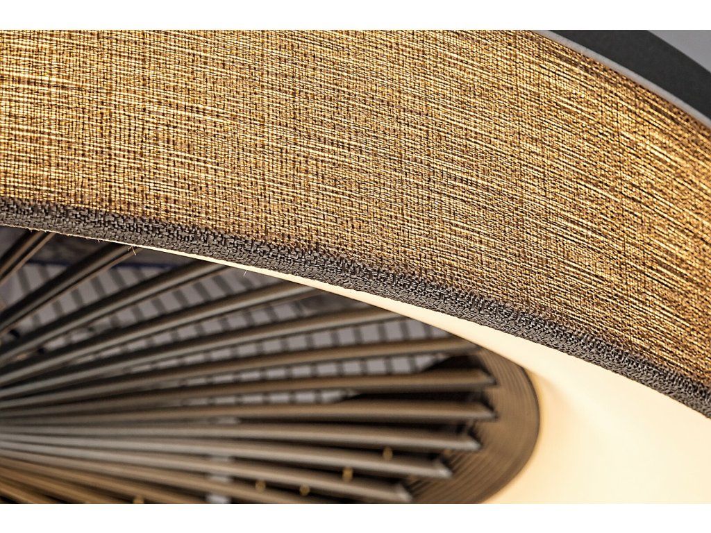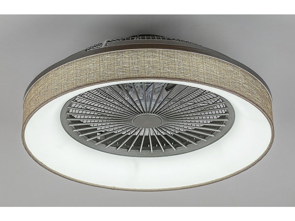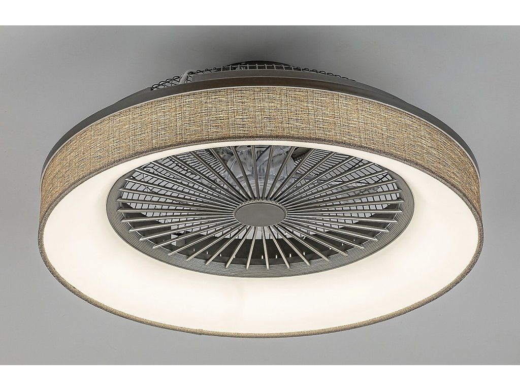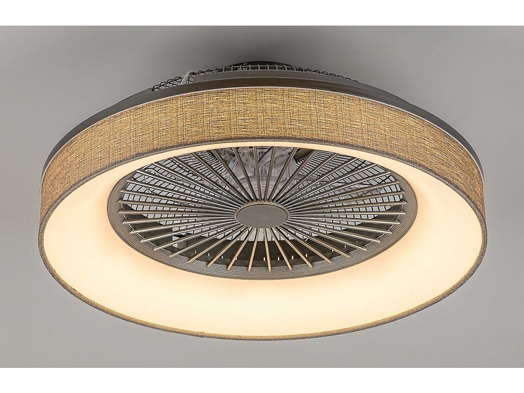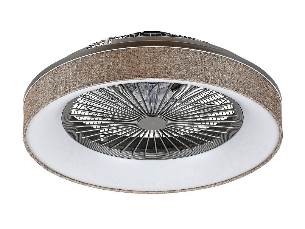 Kulaté stropní svítidlo Benicio s ventilátorem nese celou řadu funkcí navíc, proto jej doporučujeme zejména do obývacího pokoje, ložnice nebo pracovny. Kovové svítidlo stříbrné barvy je doplněno bílým plastovým stínidlem překrytým šedým textilním potahem. Svítidlo Benicio obsahuje vestavěný LED světelný zdroj s výkonem 35W a světelným tokem 1050 lumenů, přičemž jeho barevnou teplotu lze nastavit v rozmezí 3000-6000K. Svítidlo lze stmívat, tedy regulovat jeho jas a má i paměťovou funkci. Ventilátor má 15W motor, letní-zimní režim, 6 rychlostí ventilátoru a funkci časovače. Všechny extra funkce lze nastavit pomocí dálkového ovladače a teplotu barev lze alternativně nastavit nástěnným vypínačem. Baterie potřebné pro provoz dálkového ovladače jsou součástí dodávky. Rozměry tohoto inteligentního svítidla jsou průměr 525 mm, vzdálenost od stropu je 220 mm, instalační průměr 150mm. Na tento model poskytujeme 5letou záruku.