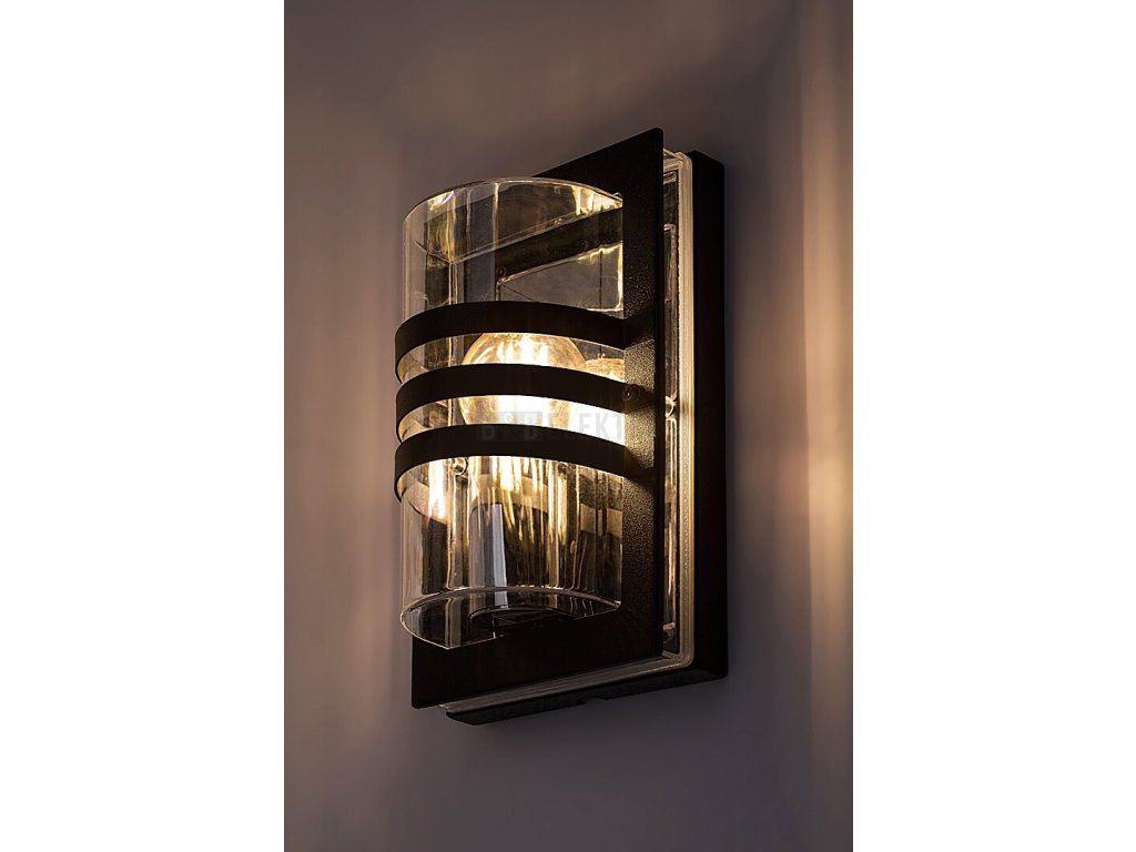 Dekorativní venkovní nástěnné svítidlo Orlova v moderním stylu se doporučuje především na terasu, ale lze jej umístit i jinde na vnější stěnu domu. Černé tělo svítidla z nerezavějící oceli doplňuje půlválcové průhledné plastové stínítko. Design je zajímavý díky třem prvkům ve tvaru řemene, které se táhnou přes stínítko a částečně zakrývají zdroj světla před pohledem. Orlova se může použít s jedním LED světelným zdrojem o výkonu do 40 W, typ patice E27. Umisťujete-li lampu na terasu, je dobré zvolit zdroj světla s teplým bílým světlem, který pomůže vytvořit útulnou domácí atmosféru. Nástěnné svítidlo má tyto rozměry: šířka 150 mm, výška 240 mm, vzdálenost od stěny 120 mm. Krytí IP44 venkovní svítilny zaručuje, že je chráněno proti vniknutí předmětů o průměru až 1 mm a proti stříkající vodě z jakéhokoli směru. Venkovní lampa Orlova se dodává bez světelného zdroje.