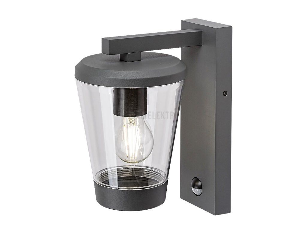 Klasicky tvarované venkovní nástěnné svítidlo Savano se snímačem pohybu je skvělou volbou na terasu nebo kdekoli na vnější stěně domu. Antracitově šedé hliníkové tělo svítidla doplňuje válcovité plastové stínítko zužující se směrem dolů a hranatá dekorativní základna. Průhledná hlava lampy visící směrem dolů je spojena s horizontálním prvkem ve tvaru štěrbiny vyčnívajícím ze základny. Nástěnné svítidlo Savano lze umístit kolem vchodových dveří nebo podél chodníku vedoucího na terasu, na vnější stěnu domu. Snímač umístěný ve spodní části pódia snímá pohyb ve vzdálenosti 8±2 m a zorném úhlu 120°. Venkovní svítilnu lze použít s jedním světelným zdrojem o výkonu do 40 W, typ patice E27. Savano má tyto rozměry: výška 280 mm, průměr 160 mm, vzdálenost od stěny 230 mm. Krytí IP44 nástěnného svítidla zaručuje, že je chráněno proti vniknutí předmětů o průměru až 1 mm a proti stříkající vodě z jakéhokoli směru. Venkovní lampa Savano se dodává bez světelného zdroje.