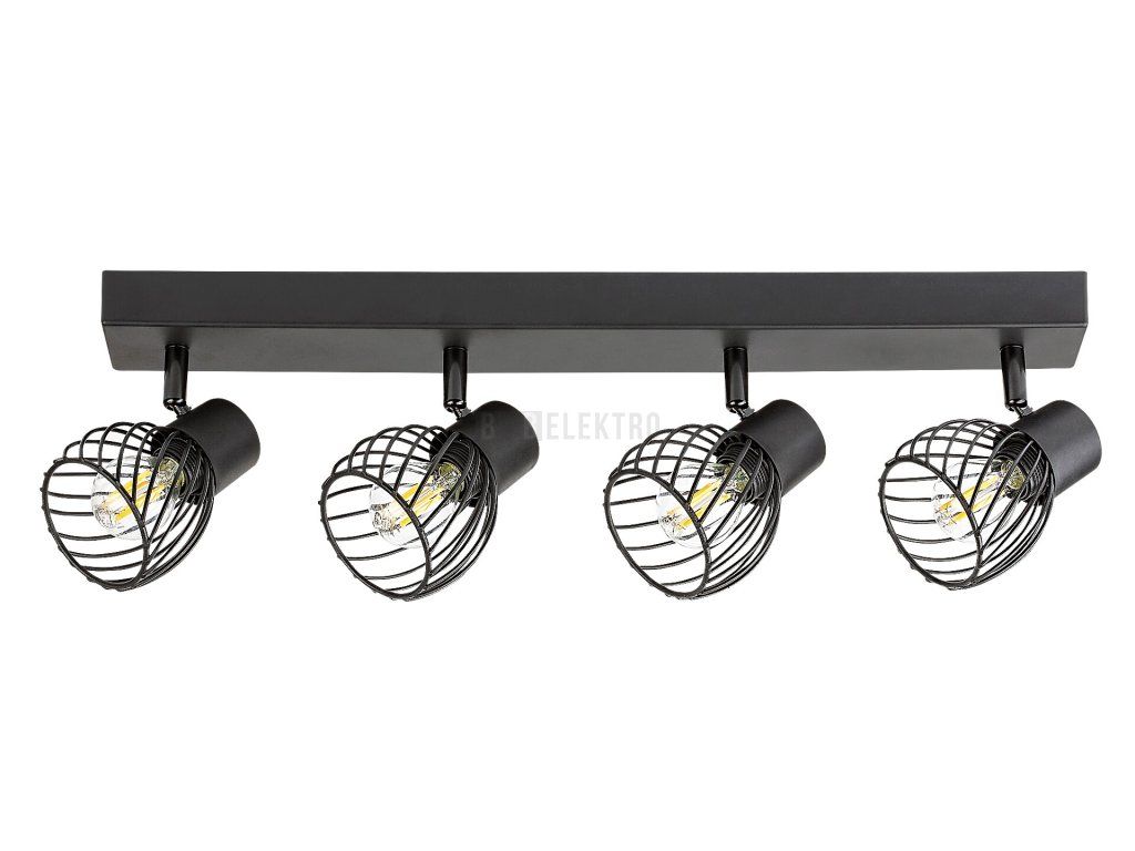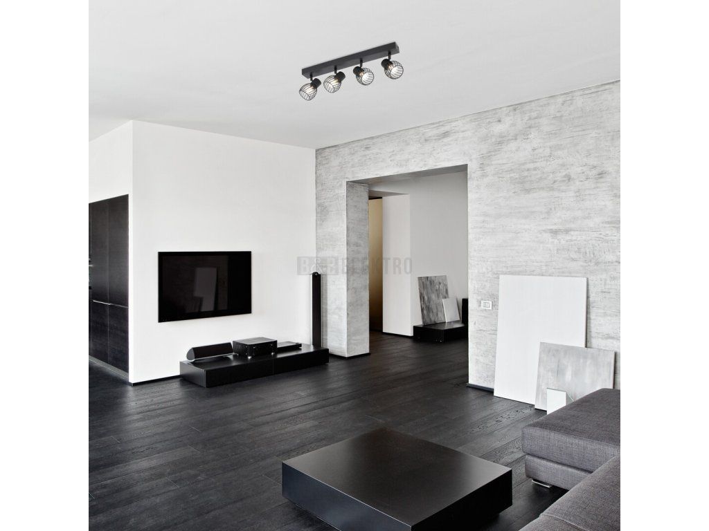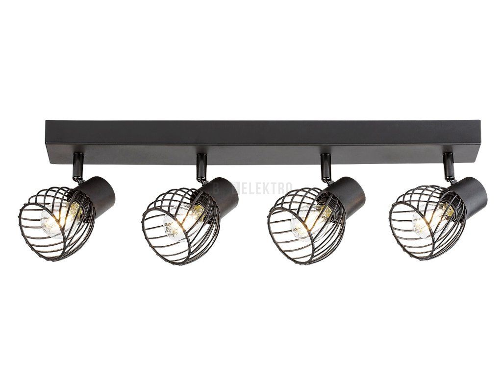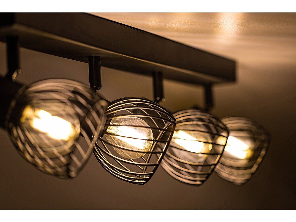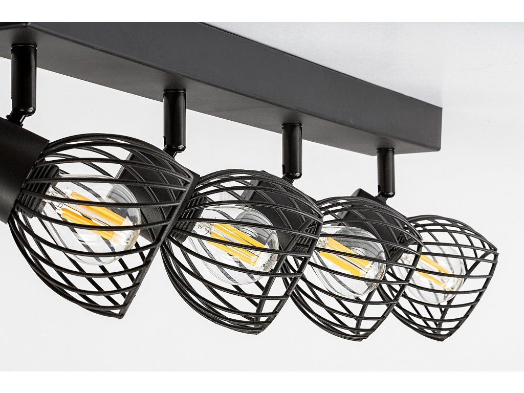 Čtyřdílné stropní bodové svítidlo Aberama v industriálním stylu se doporučuje především do obývacího pokoje nebo ložnice. Model vyrobený celý z plastu v černé barvě je doplněn kulovitými stínítky s otevřenou mřížkou ve spodní části a lze jej připevnit ke stropu pomocí obdélníkové dekorativní základny. Díky pohyblivým hlavám svítidla umístěným v řadě vedle sebe můžete světlo svítidla nasměrovat jak chcete. Aberama lze použít se čtyřmi světelnými zdroji, každý s výkonem do 10 W, objímka typu E14. Pokud chceme stropní svítidlo použít v ložnici, doporučujeme jej provozovat se zdroji teplého bílého světla, které napomáhají navození intimní, domácké atmosféry. Rozměry čtyřbodového svítidla Aberama: šířka 545 mm, výška 130 mm, průměr žárovek 85 mm, vzdálenost svítidla od stropu 150 mm. Tento model je dodáván bez světelných zdrojů.