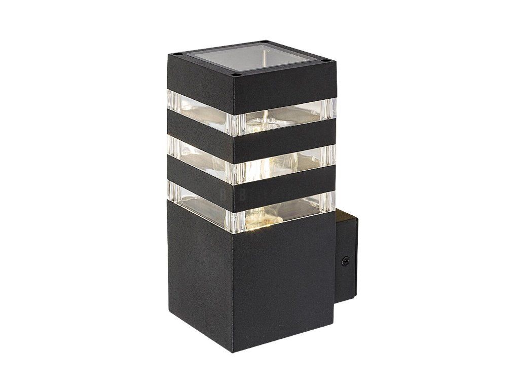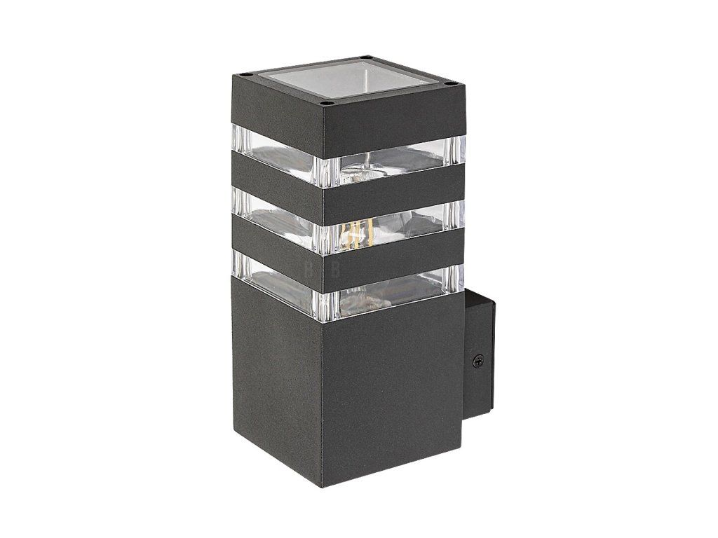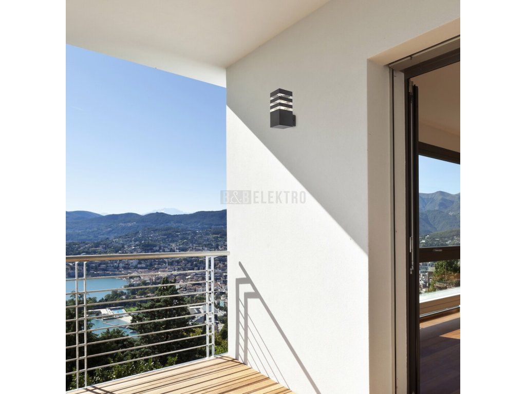 Venkovní nástěnné svítidlo Ankara v moderním stylu může být dobrou volbou pro terasu i vnější stěnu domu, například pro osvětlení chodníku vedoucího ke vchodu. Antracitově šedá hliníková svítilna doplňuje průhledné plastové stínítko s pásovým výstupkem, které poskytuje vzrušující osvětlení. Svítilnu lze připevnit na stěnu pomocí prvku, který se vysouvá ze spodní části dozadu. Ankaru lze použít s jedním světelným zdrojem o výkonu do 12 W, typ patice E27. Rozměry vnějšího svítidla jsou: šířka 90 mm, výška 200 mm, vzdálenost od stěny 125 mm, montážní průměr 65 mm. Krytí IP44 zaručuje, že svítidlo je chráněno proti vniknutí předmětů o průměru až 1 mm a proti stříkající vodě z jakéhokoli směru. Venkovní nástěnné svítidlo Ankara se dodává bez světelného zdroje.