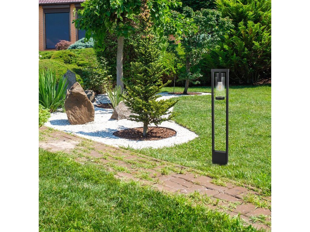 Moderní venkovní stojací lampa Kolta může být stylovým doplňkem vaší zahrady: ať už se jedná o osvětlení chodníku přes zahradu, nebo o osvětlení důrazných částí v zahradě, tato lampa bude zaručeně dobrou volbou. Matné černé hliníkové tělo svítidla doplňuje válcová průhledné plastové stínítko a samotná visící hlava je připevněna k horní části podlouhlého obdélníkového rámu. Kolta může být použita s jedním světelným zdrojem o výkonu do 12 W, typ patice E27. Rozměry zahradní lampy jsou následující: šířka 140 mm, výška 800 mm, průměr stínítka 75 mm. Krytí IP44 zaručuje, že svítidlo je chráněno proti vniknutí předmětů o průměru až 1 mm a proti stříkající vodě z jakéhokoli směru. Venkovní stojací lampa Kolta se dodává bez světelného zdroje.