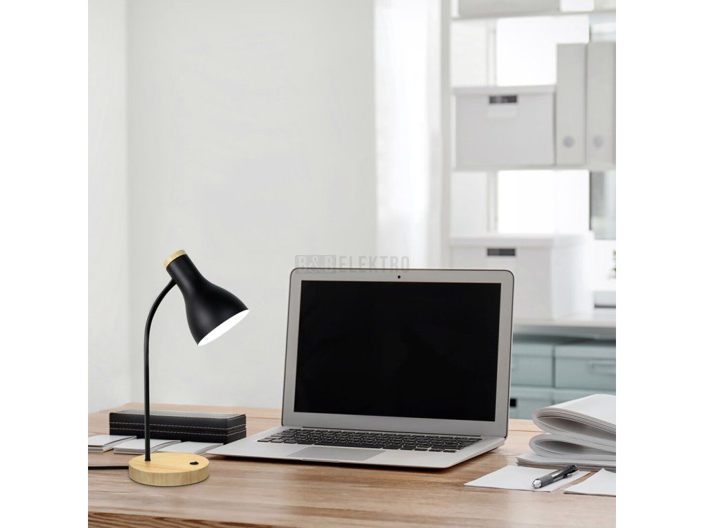 Stolní lampa Ferb v moderním stylu se svým elegantním přírodním vzhledem může být vhodnou volbou na pracovní stůl mnoha pracoven nebo dětských pokojů. Matně černý model z kovu a dřeva doplňuje štíhlý zakřivený stonek, směrem dolů se rozšiřující válcovité stínidlo a kulatý dřevěný ozdobný podstavec s páčkovým vypínačem. Vnitřek stínidla je bílý, zatímco horní část hlavy lampy a ozdobná základna zjemňují přísnost matné černé s přirozeností dřeva. Ferb lze použít s jedním světelným zdrojem o výkonu až 25 W, zásuvka typu E14. Pro práci a studium doporučujeme zdroj studeného bílého světla, který pomáhá udržet koncentraci. Rozměry stolní lampy jsou následující: šířka 250 mm, výška 430 mm, průměr 110 mm, délka kabelu 1500 mm. Tento model je dodáván bez světelného zdroje.