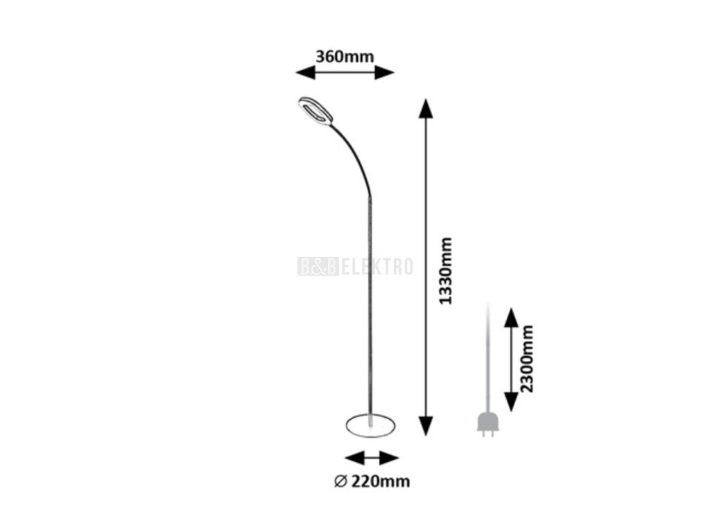 Stojací lampa Rader je díky malé prostorové náročnosti ideální volbou i do menších obývacích pokojů, snadno se vejde ke stěně do rohu. Dlouhá tenká stopka černého modelu z kovu je zakončena hlavicí lampy ve tvaru koblihy a stabilitu lampy zajišťuje kulatá plochá ozdobná základna. Bílé stínidlo je vyrobeno z plastu. Rader má vestavěný LED světelný zdroj spadající do energetické třídy G, který má výkon 11 W, svítivost 570 lumenů se stínidlem, 930 lumenů bez stínidla a životnost 25 000 hodin. Barevná teplota světelného zdroje je 3000 K, lampa vydává odpovídající teplé bílé světlo, které vytváří v místnosti intimní, domáckou atmosféru. Stojací lampa je stmívatelná, to znamená, že její jas lze měnit pomocí dotykového spínače. Rozměry Raderu jsou následující: šířka 360 mm, výška 1330 mm, instalační průměr 220 mm, délka kabelu 2300 mm.