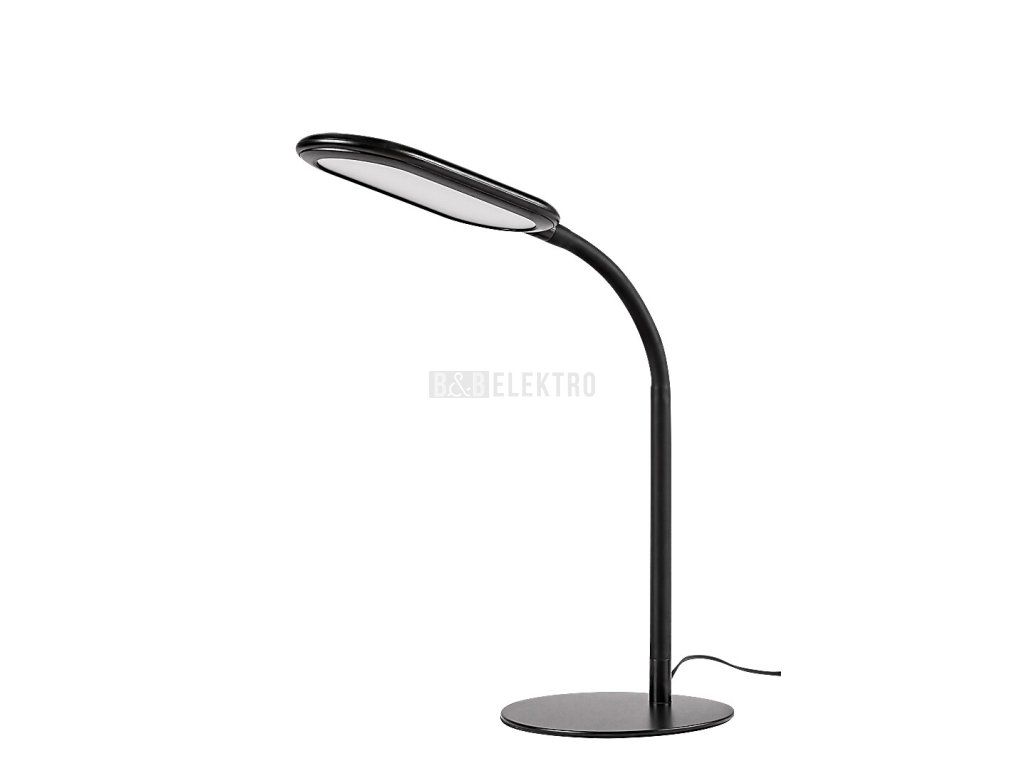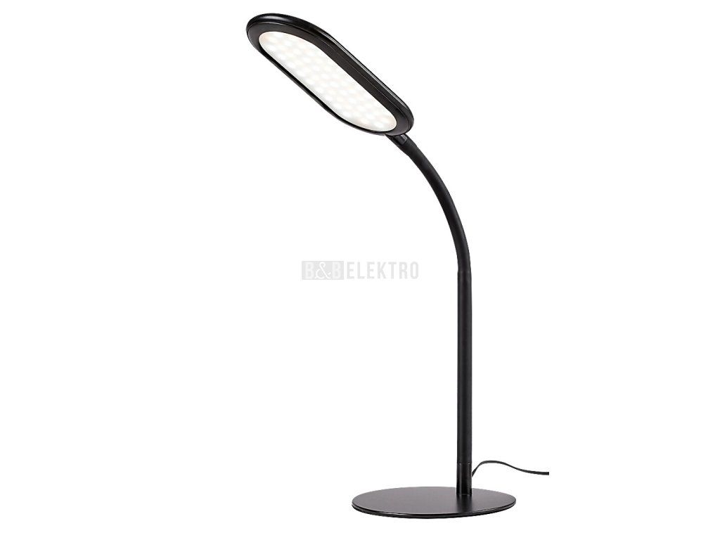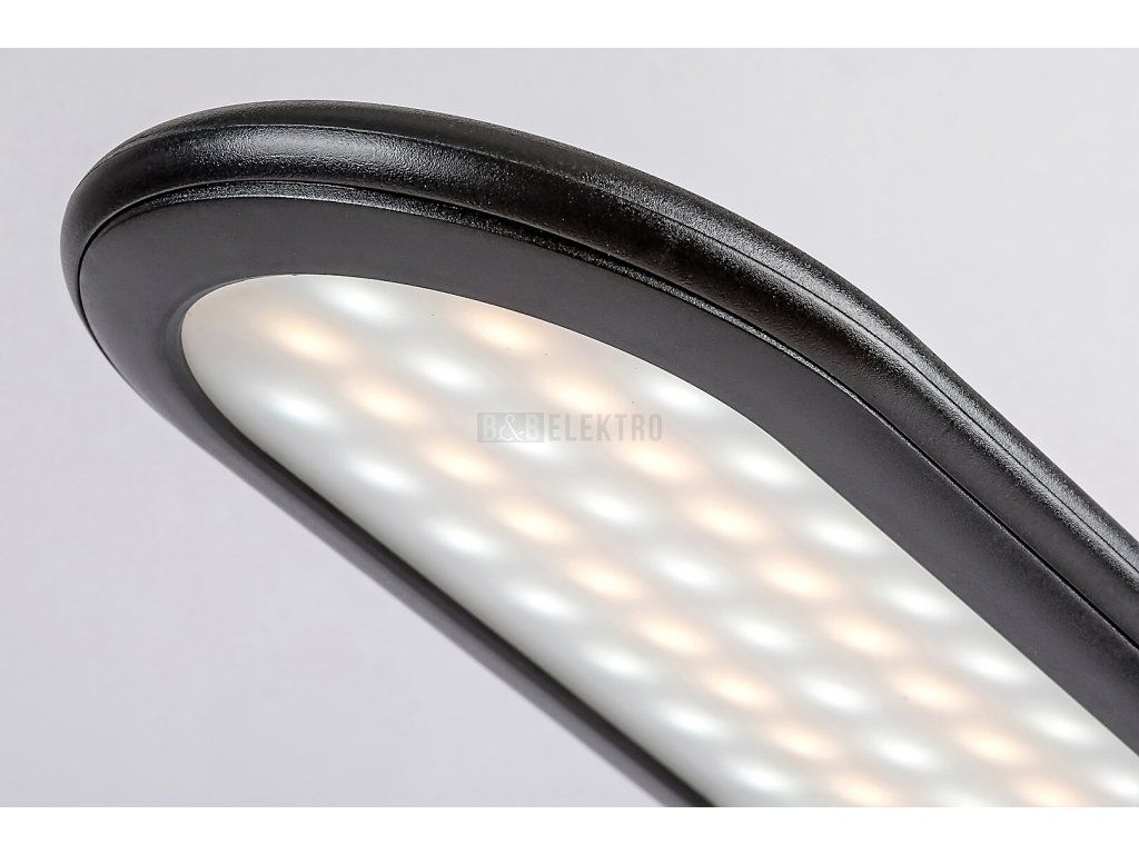 Stolní lampa Adelmo je díky svému jednoduchému, čistému designu a extra funkcím skvělou volbou na stůl každé moderní pracovny. Černý kovový model se vyznačuje štíhlým, zakřiveným stonkem a zcela plochou hlavou lampy, který ze strany vypadá skoro jako rovné prodloužení stonku. Lampa je doplněna bílým plastovým stínidlem a kulatou ozdobnou základnou. Adelmo má vestavěný LED světelný zdroj s výkonem 10 W a životností 20 000 hodin. Světelný tok svítidla je 910lm, světelný tok světelného zdroje je 1000lm. Teplotu barvy světelného zdroje lze pomocí dotykového spínače nastavit v rozmezí 3000-6000 K, to znamená, že lampa může svítit teplým, přirozeným nebo studeným bílým světlem. Šířka stolní lampy je 360 ??mm, výška 330 mm, délka kabelu 1900 mm.