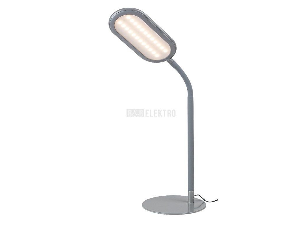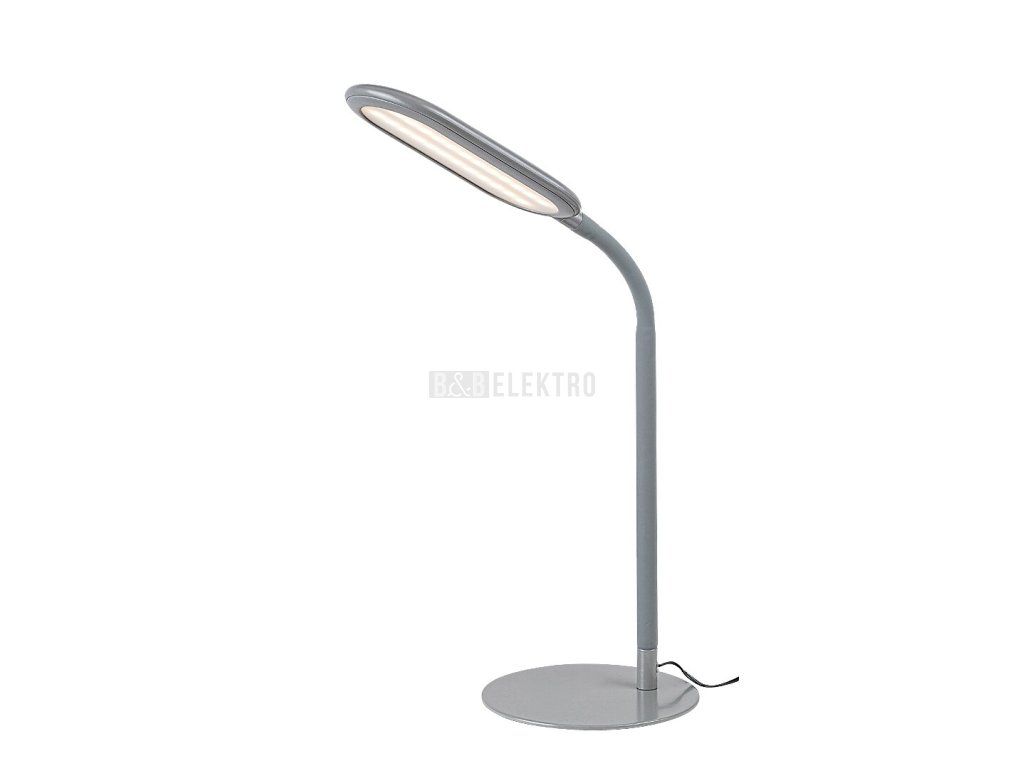 Stolní lampa Adelmo je díky svému jednoduchému, čistému designu a extra funkcím skvělou volbou na pracovní stůl každé moderní pracovny. Model vyrobený z kovu v šedé barvě se vyznačuje štíhlým, zakřiveným stonkem a zcela plochou hlavou lampy, která zboku vypadá téměř jako rovné prodloužení stonku. Svítilna je doplněna o bílé plastové stínítko a kulatý ozdobný podstavec. Adelmo má zabudovaný LED světelný zdroj s výkonem 10 W a životností 20 000 hodin. Světelný tok svítidla je 910lm, světelný tok světelného zdroje je 1000lm. Teplotu barvy světelného zdroje lze pomocí dotykového spínače nastavit v rozmezí 3000-6000 K, t.j. svítidlo může svítit teplým, přirozeným nebo studeným bílým světlem. Šířka stolní lampy je 360 mm, výška je 330 mm, délka kabelu je 1900 mm.