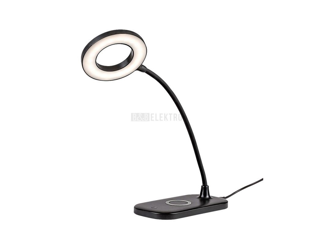 Moderní stolní lampa Hardin se se svými mnoha funkcemi navíc stane nepostradatelným společníkem v pracovně nebo na každém stole. Celoplastová inteligentní lampa je vyrobena v černé barvě s bílým stínítkem, hlava lampy má tvar donutu a obdélníková ozdobná základna má zaoblené rohy. Hardin má zabudovaný LED světelný zdroj patřící do energetické třídy G o výkonu 5 W, svítivostí 210 lumenů se stínítkem, 720 lumenů bez stínítka a životností 20 000 hodin. Barevnou teplotu lampy lze měnit v rozmezí 2700-6000 K, tzn. můžete nastavit teplé, přirozené nebo studené bílé světlo. Ten je vhodný zejména pro práci a studium. Lampa je navíc stmívatelná, t.j. lze měnit i její jas. Barevnou teplotu a jas lze nastavit pomocí dotykového spínače na základně. Hardin má bezdrátovou nabíječku a lze jej nabíjet pomocí USB kabelu. Rozměry stolní lampy jsou následující: výška 290 mm, průměr 100 mm, montážní hloubka 165 mm.