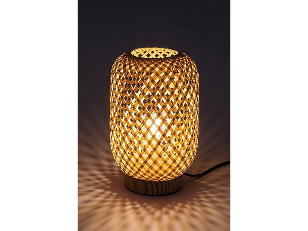 Stolní lampa Alinafe přirozeného vzhledu se doporučuje především milovníkům skandinávského stylu do obývacího pokoje. Položen na spodním stole nebo poličce může být útulným kouskem nábytku v místnosti. Model v přírodní barvě z kovu a dřeva je vyroben s kulatou ozdobnou základnou a otevřeným válcovým stínítkem z přírodního ratanu. Řídce tkaný ratan umožňuje světlu volně proudit ze svítidla, takže barevná teplota žárovky je obzvláště účinná. Svítilnu lze použít s jedním světelným zdrojem o maximálním výkonu 25 W, objímkou typu E14. K tomuto modelu doporučujeme světelný zdroj s teplým bílým světlem, který pomáhá navodit v místnosti intimní domácí atmosféru a usnadňuje večerní naladění k odpočinku. Rozměry stolní lampy Alinafe: výška 240 mm, průměr 155 mm, délka kabelu 1500 mm. Tento model je dodáván bez světelného zdroje.
