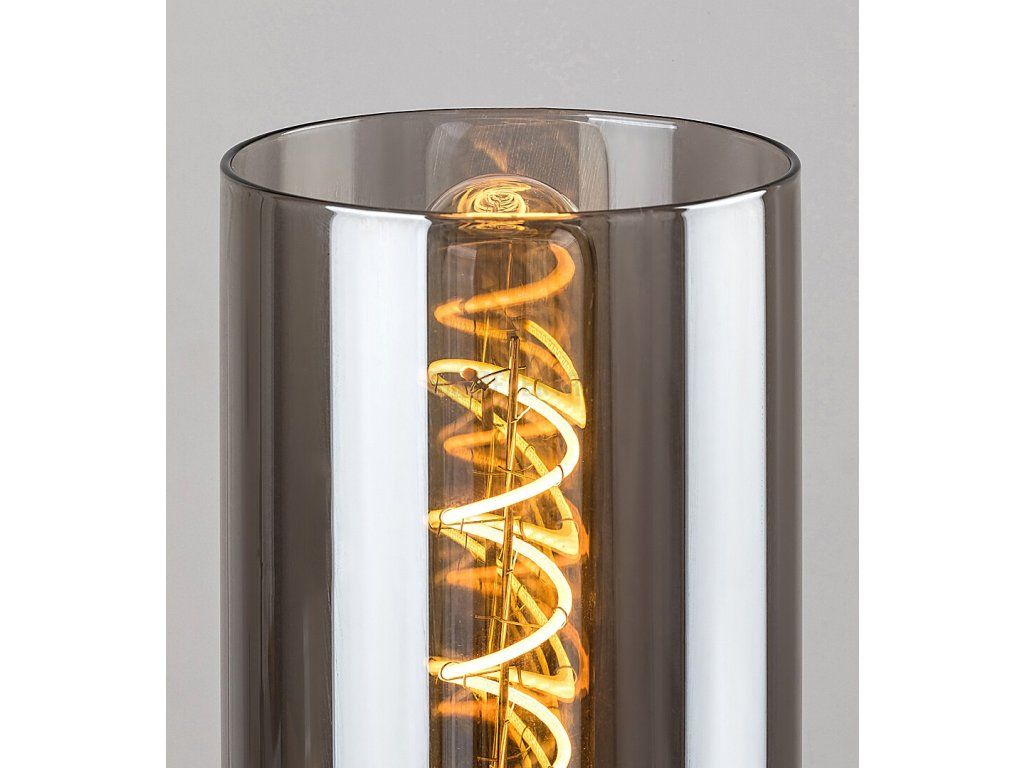 Stolní lampa Ronno v moderním stylu může být útulným kusem nábytku v obývacím pokoji nebo ložnici. Díky malé náročnosti na prostor lze snadno umístit na noční stolek nebo na nižší stolek. Černá lampa vyrobená z kovu je doplněna o cylindrické, barevné skleněné stínítko, přes které až podezřele filtruje světlo zevnitř lampy. Ronno se spínačem lze použít s jedním světelným zdrojem o výkonu až 25 W, objímka typu E27. K tomuto modelu se nejvíc hodí světelný zdroj s teplým bílým světlem, který pomáhá vytvářet v místnosti domácí, intimní atmosféru. Rozměry stolní lampy: průměr 90 mm, výška 295 mm, délka kabelu 1500 mm. Tento model je dodáván bez světelného zdroje.