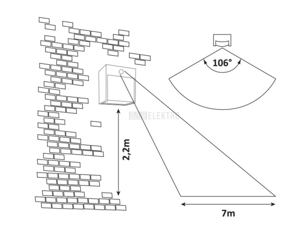 Venkovní nástěnné svítidlo Balimo v moderním stylu s pohybovým senzorem je vyrobeno z hliníku v matné černé barvě a je doplněno o bílé plastové stínidlo. Toto čtvercové svítidlo je skvělou volbou na terasu u vchodových dveří, ale můžete jej nainstalovat kdekoli na vnější stěnu vašeho domu, kde je třeba osvětlení pro bezpečný pohyb. Svítidlo Balimo obsahuje vestavěný LED světelný zdroj s výkonem 12W, světelným tokem 560 lumenů a životností 25000 hodin. Svítidlo má barevnou teplotu 4 000 K a podle toho svítí přirozeným bílým světlem. Senzor detekuje pohyb ze vzdálenosti 7 metrů při zorném úhlu 106°. Rozměry tohoto venkovního svítidla jsou následující: šířka 120mm, výška 130mm, vzdálenost od stěny 95mm. Má krytí IP44, které zajišťuje ochranu proti vniknutí předmětů do průměru 1 mm a proti stříkající vodě z jakéhokoli směru. Na venkovní nástěnné svítidlo Balimo s pohybovým senzorem poskytujeme záruku 5 let.