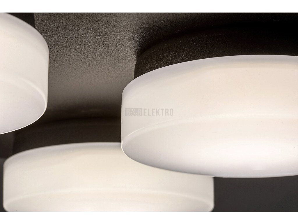 Jednoduchý design koupelnového stropního svítidla Attichus je praktickou volbou téměř do každé moderní koupelny. Matná černá lampa vyrobená z kovu je doplněna kulatými, bílými plastovými stínítky a lze jej připevnit na strop pomocí velké čtvercového dekorativního podstavce. Díky čistému designu a černobílé barevné kombinaci se tento model skvěle hodí do mnoha interiérů. Attichus má zabudované LED světelné zdroje energetické třídy F, s celkovým výkonem 21 W, svítivostí 1900 lumenů se stínítkem, 2670 lumenů bez stínítka a životností 30 000 hodin. Světelné zdroje s barevnou teplotou 4000 K svítí přirozeným bílým světlem, které v koupelně vytváří moderní, čistý efekt. Krytí svítidla IP44 zajišťuje ochranu proti pronikání pevných částic o průměru větším než 1 mm, jakož i proti stříkající vodě z jakéhokoli směru. Velikost čtyřdílného stropního svítidla je 280x280 mm a vzdálenost od stropu 70 mm.