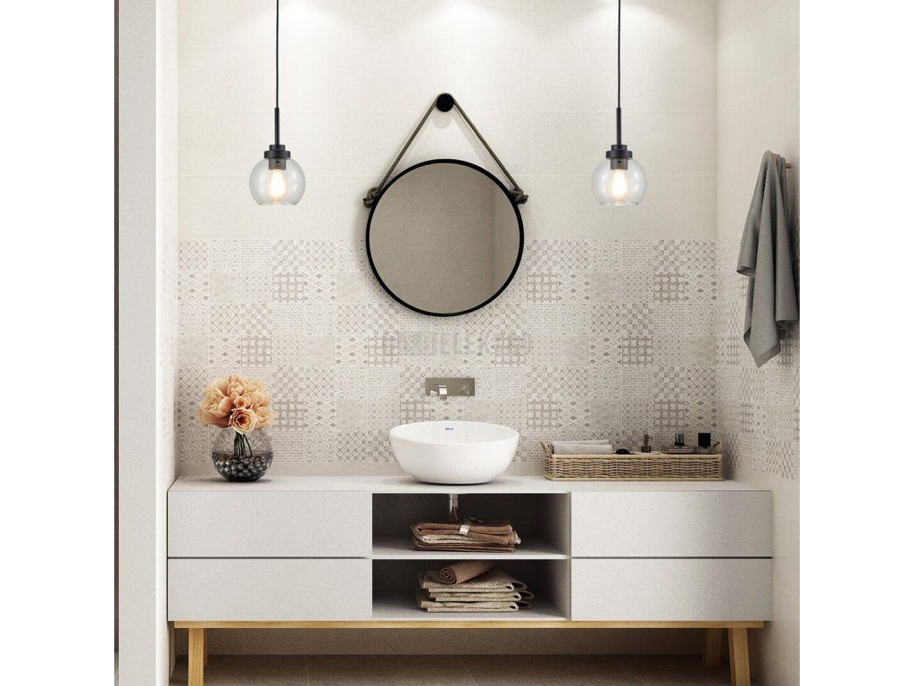 Koupelnovou závěsnou lampu Tirina doporučujeme těm, kteří v koupelně netrvají na běžném řešení osvětlení stropním svítidlem, ale rádi by si tuto místnost svého domova zútulnili moderní lampou. Matný černý model vyrobený z kovu je doplněn kulatým průhledným skleněným stínítkem, který je ve spodní části otevřen a lze jej připevnit ke stropu pomocí kulatého ozdobného podstavce. Tirinu lze použít s jedním světelným zdrojem o výkonu až 15 W, objímkou typu E27. Doporučujeme světelný zdroj s přirozeným bílým světlem, se kterým dosáhneme moderního čistého efektu. Jelikož stínítko lampy umožňuje vidět zdroj světla, vyplatí se použít tento model s estetickou žárovkou jiného tvaru, než je obvyklé. Krytí Tirina IP44 zajišťuje ochranu proti pronikání pevných částic o průměru větším než 1 mm, jakož i proti stříkající vodě z jakéhokoli směru. Průměr koupelnové lampy je 150 mm, délka 1200 mm, montážní průměr 100 mm. Tento model je dodáván bez světelného zdroje.