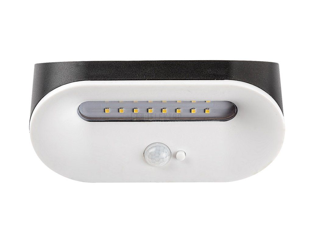 Moderní venkovní nástěnné svítidlo Brezno se solárním senzorem pohybu je ideální na terasu nebo před dům, kde lze použít k osvětlení chodníku vedoucího ke vchodu. Stylový zaoblený tvar je v černé barvě s bílým stínítkem a je celý vyroben z plastu. Brezno má zabudovaný LED světelný zdroj s výkonem 3,2 W, svítivostí 145 lumenů se stínítkem, 200 lumenů bez stínítka a s teplotou barvy světla 4000 K. Zdroj přirozeného bílého světla má životnost 20 000 hodin. Baterie má napětí 3,7 V a kapacitu 1200 mAh. Inteligentní snímač rozpozná pohyb ze vzdálenosti 3-5 metrů při úhlu záběru 120° a podle podmínek upraví jas světla. Vnější lampa s vypínačem má šířku 160 mm, výšku 75 mm a vzdálenost od stěny 80 mm. Krytí Brezna IP44 zaručuje, že je chráněno proti vniknutí předmětů o průměru až 1 mm a proti stříkající vodě z jakéhokoli směru.