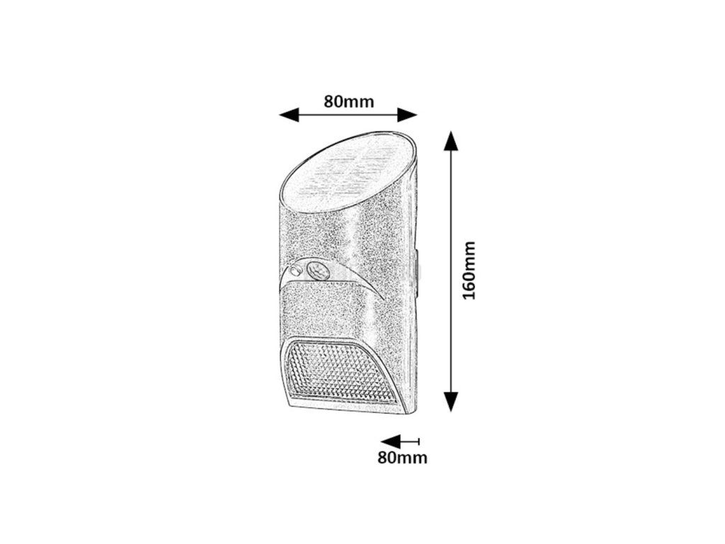 Moderní venkovní nástěnné solární svítidlo Sepik se senzorem pohybu je ideální na terasu nebo před dům, kde lze použít k osvětlení chodníku vedoucího ke vchodu. Černý model, který je celý vyroben z plastu, je doplněn bílým stínítkem. Sepik má zabudovaný LED 3,6W světelný zdroj s jasem svítivostí 150 lumenů se stínítkem a 260 lumenů bez stínítka a teplotou barev 4000 K. Zdroj přirozeného bílého světla má životnost 10 000 hodin, napětí baterie je 3,7 V a kapacita 1800 mAh. Inteligentní snímač rozpozná pohyb ze vzdálenosti 3-5 metrů při úhlu záběru 120° a podle podmínek upraví jas světla. Rozměry svítidla s vypínačem jsou: šířka 80 mm, výška 160 mm, vzdálenost od stěny 80 mm. Krytí IP44 solárního nástěnného svítidla Sepik zaručuje, že je chráněno proti vniknutí předmětů o průměru až 1 mm a proti stříkající vodě z jakéhokoli směru.