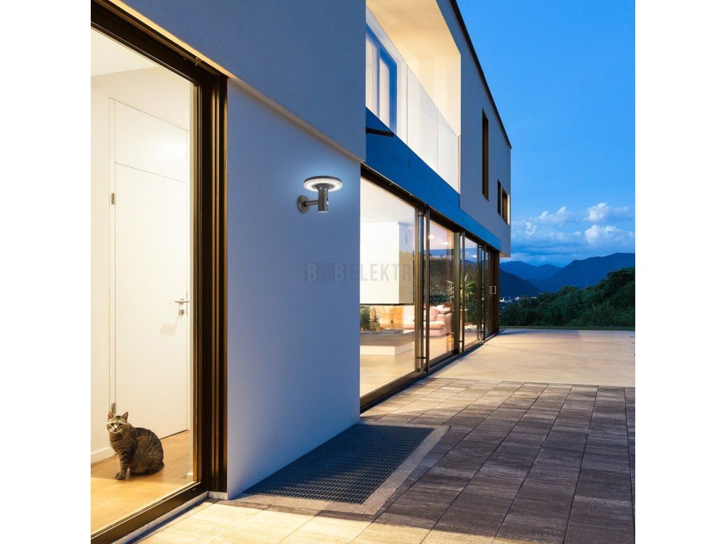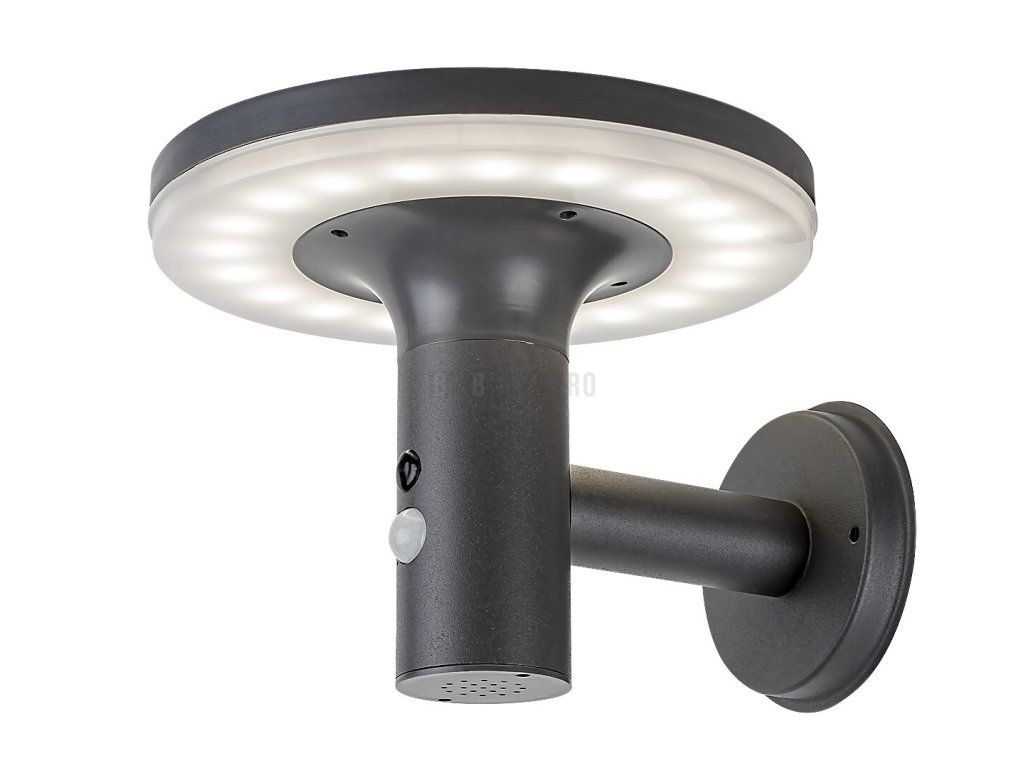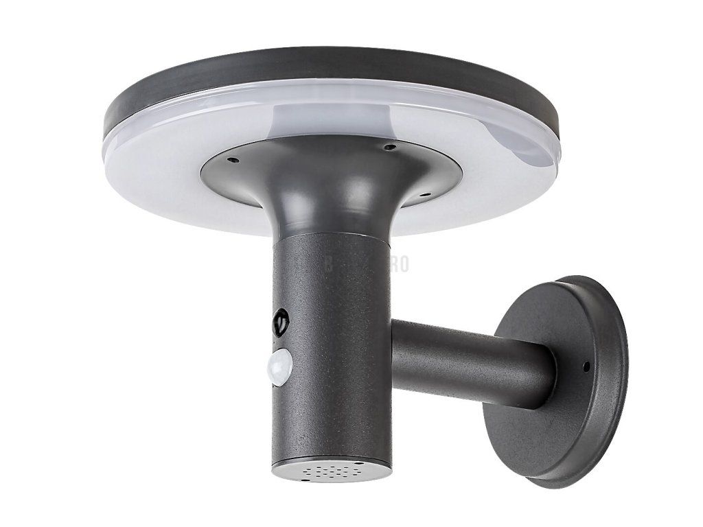 Moderní venkovní solární nástěnné svítidlo Alaska s pohybovým senzorem je praktickou volbou na terasu nebo na jakoukoli vnější stěnu vašeho domu. Můžete jej umístit v blízkosti schodů vedoucích na terasu nebo podél chodníku vedoucího vedle domu. Tento model s oblými tvary je vyroben z nerezavějící oceli v antracitové barvě a je doplněn bílým plastovým stínítkem. Betů má zabudovaný LED 10W světelný zdroj s jasem 250 lumenů, a 300 lumenů bez stínítka, životností 10 000 hodin a barevnou teplotou 4000 K, tj. přirozené bílé světlo. Inteligentní snímač, který mění jas světla podle podmínek, rozpozná pohyb ze vzdálenosti 5-8 metrů při úhlu záběru 120°. Baterie má napětí 3,7 V a kapacitu 2500 mAh. Rozměry nástěnného svítidla s vypínačem jsou tyto: průměr 210 mm, výška 165 mm, montážní průměr 100 mm. Krytí IP44 venkovní svítilny zaručuje, že je chráněno proti vniknutí předmětů o průměru až 1 mm a proti stříkající vodě z jakéhokoli směru.