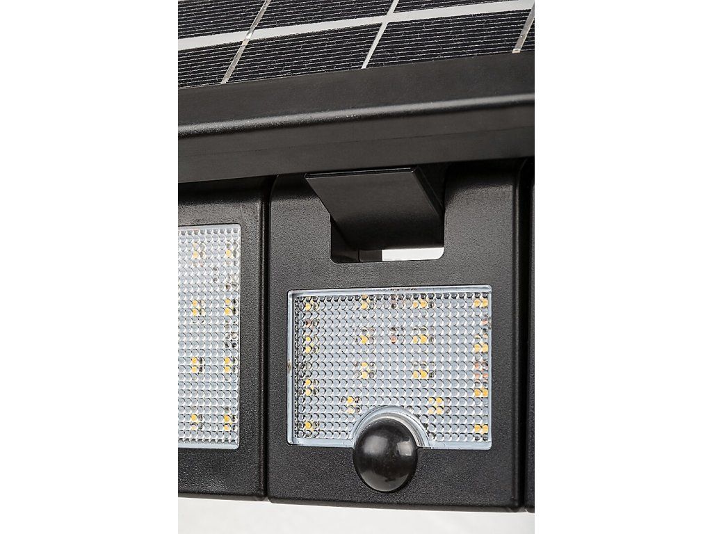 Trojité vnější nástěnné svítidlo Lihull v moderním stylu se senzorem pohybu a solárním napájením poskytuje účinné osvětlení na terase nebo na vnější stěně domu podél chodníku vedoucího ke vchodu. Tento celoplastový černý model je doplněn bílou stínítkem. Model Lihull má zabudované světelné zdroje LED 9,6W s celkovým jasem 500 lumenů a 600 lumenů bez stínítka, a teplotou barev 4000 K. Životnost zdrojů přirozeného bílého světla je 10 000 hodin. Inteligentní snímač, který mění jas světla podle podmínek, rozpozná pohyb ze vzdálenosti 5-8 metrů při úhlu záběru 120°. Baterie má napětí 3,7 V a kapacitu 3000 mAh. Nástěnné svítidlo s vypínačem má šířku 200 mm a výšku 130 mm. Krytí IP44 venkovní svítilny zaručuje, že je chráněno proti vniknutí předmětů o průměru až 1 mm a proti stříkající vodě z jakéhokoli směru.