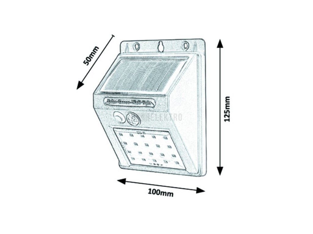 Solární lampa Ostrava s pohybovým senzorem je vyrobena v černé barvě s funkčním designem. Plastové venkovní svítidlo má zabudovanou LED žárovku, která vyzařuje přirozené bílé světlo. Světelný zdroj má výkon 1,3 W, světelný tok 100 lumenů, barevnou teplotu 4 000 K a životnost 5 000 hodin. Lampa Ostrava bude skvělou volbou na terasu nebo do zahrady, ale můžete ji také namontovat téměř kdekoliv na vnější stěnu domu. Senzor detekuje pohyb ze vzdálenosti 0-3 metry při pozorovacím úhlu 120 °. Rozměry vnějšího solárního svítidla jsou následující: šířka 100 mm, výška 125 mm, vzdálenost od stěny 50 mm. Lampa Ostrava má krytí IP44, které zaručuje, že je chráněna proti vniknutí předmětů s maximálním průměrem 1 mm, jakož i proti stříkající vodě z kteréhokoliv směru.