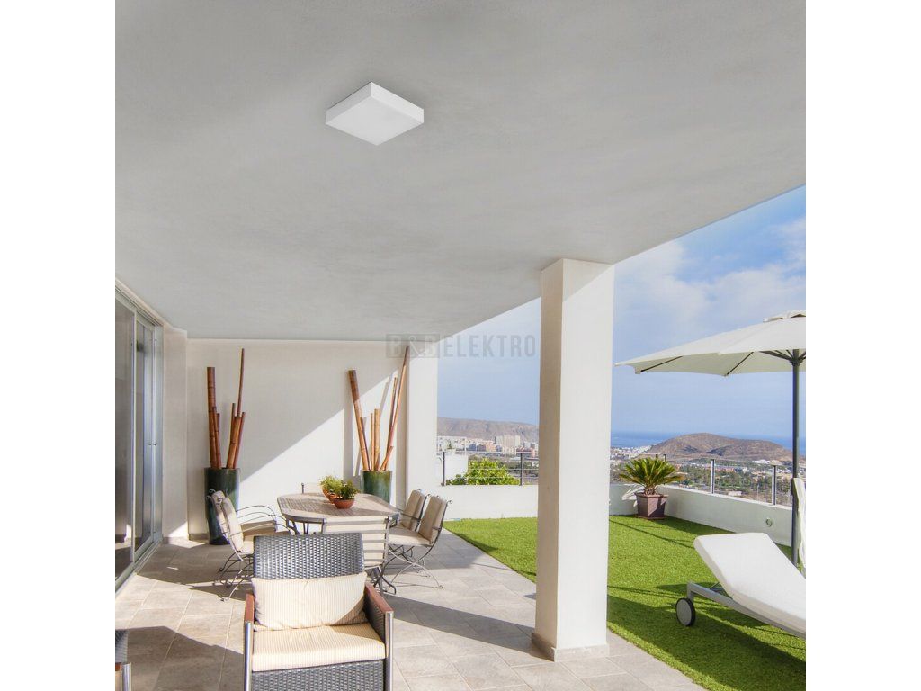 Venkovní stropní svítidlo Tartu představující minimalistický styl bude skvělou volbou pro terasové osvětlení. Čtvercové matné bílé hliníkové tělo je doplněno plastovým stínítkem a má zabudovaný zdroj světla LED. Inteligentní žárovka má výkon 24 W, světelný tok 2500 lumenů, zatímco její barevnou teplotu je možné zvolit pomocí zabudovaného posuvníku v horní části svítidla: 2800, 4000 nebo 6000 K. To znamená, že svítidlo Tartu může osvětlovat studeným, přirozeným nebo teplým bílým světlem. Životnost světelného zdroje je 20 000 hodin. Svítidlo Tartu má stupeň krytí IP44, to znamená, že je chráněno proti vniknutí předmětů s maximálním průměrem 1 mm, jakož i proti stříkající vodě z kteréhokoliv směru. Rozměry venkovního světla jsou následující: 300x300mm, vzdálenost od stropu 40 mm. Na vnější stropní svítidlo Tartu se poskytuje záruka 5 let.