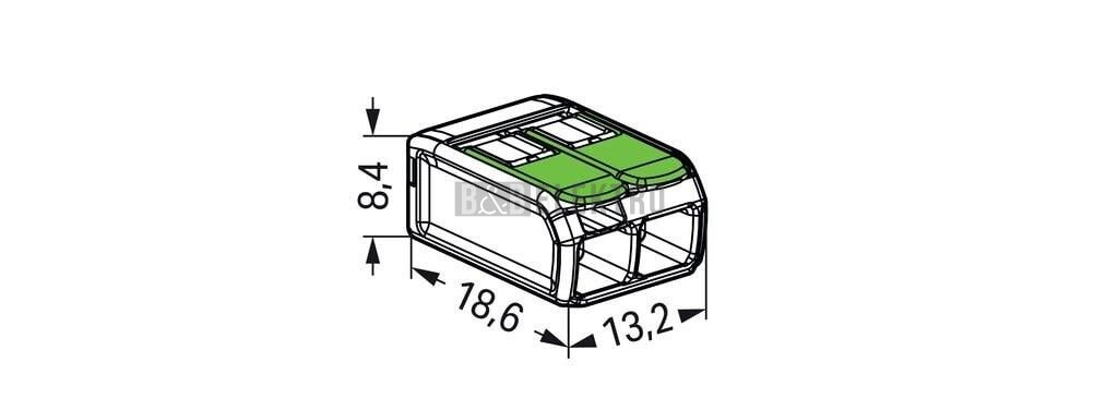 Svorka krabicová 2x4mm2 COMPACT max.85°C 221-422 páčková zelená WAGO