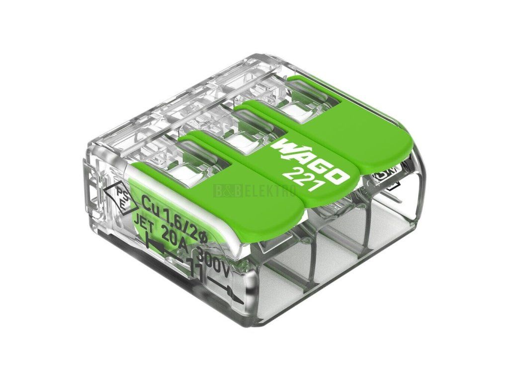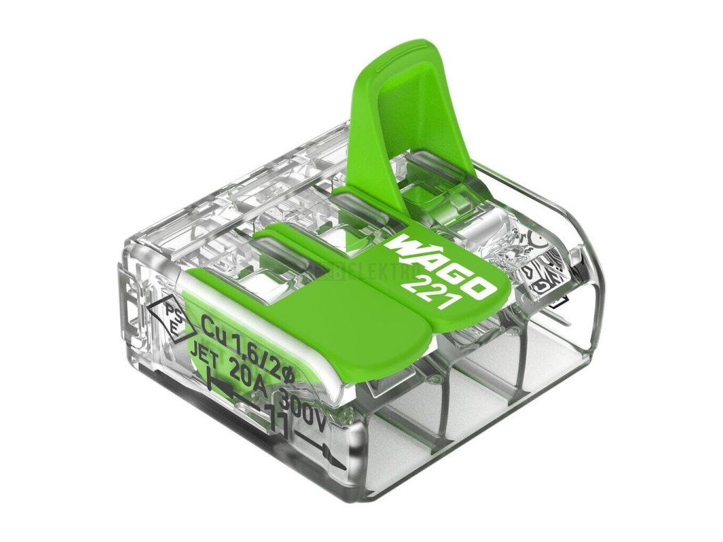 Svorka krabicová 3x4mm2 COMPACT max.85°C 221-423 páčková zelená WAGO