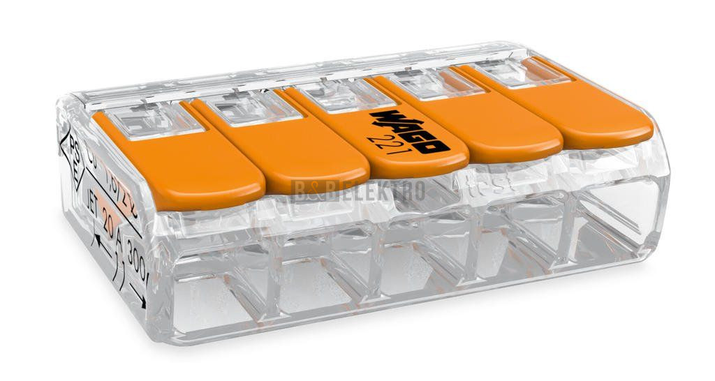 krabicová spojovací svorka WAGO COMPACT pro všechny druhy vodičů maximálně 4 mm2 s 5 vodiči ovládání páčkami