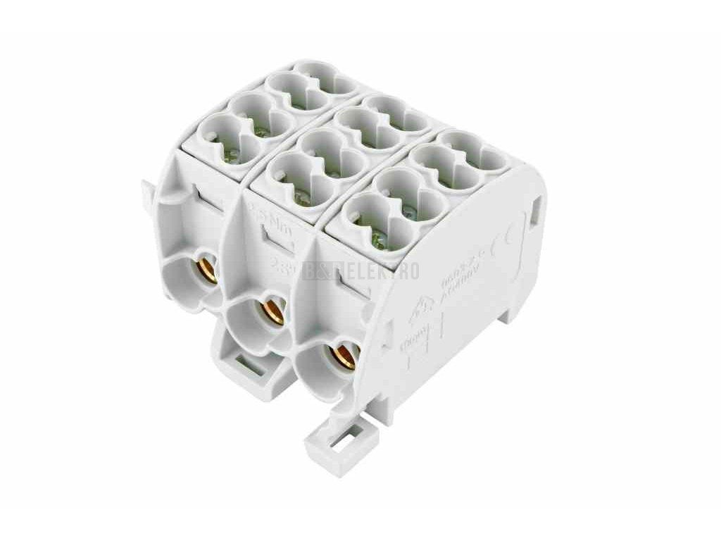 Svorkovnice rozbočovací HLAK 25//3 C L, 152A, 3pól., IP20, 1000V, 152A, 3-pólová, na 1 pól: 2x25mm2, 2x16mm2, CU, na DIN.