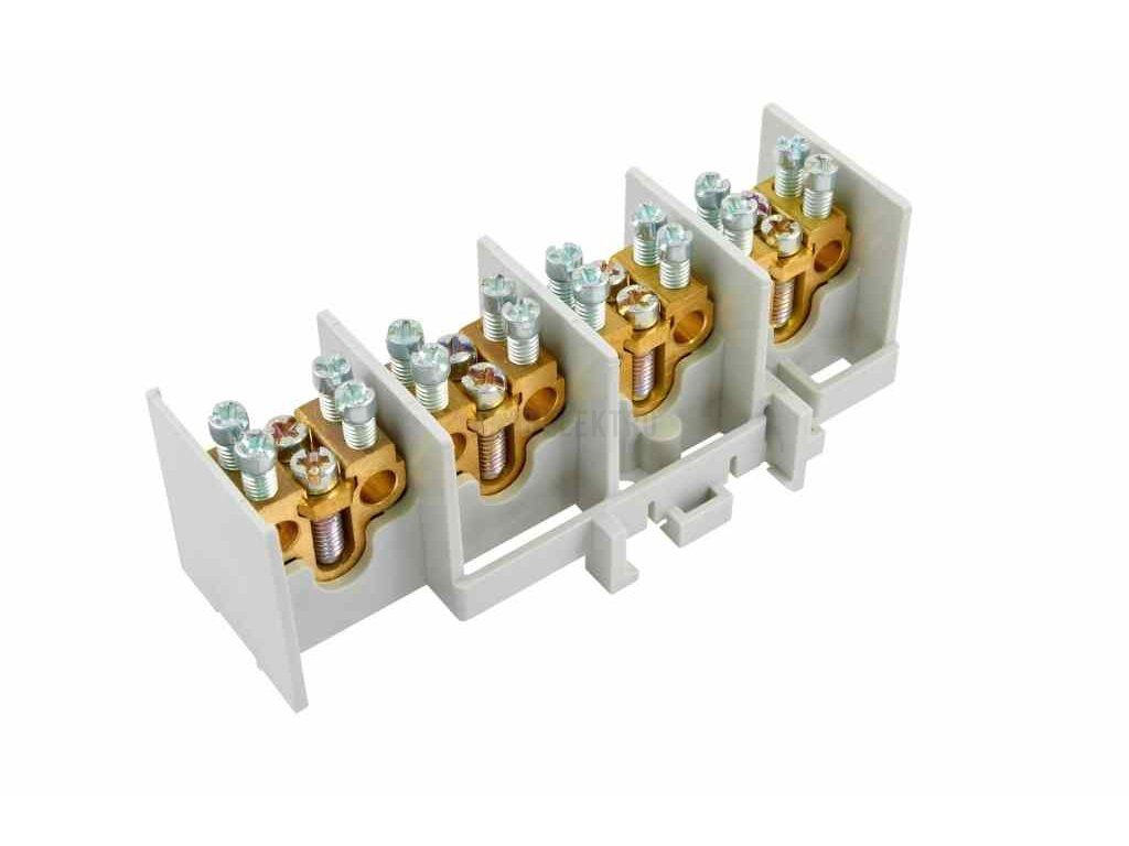 Otevřená 4-pólová svorka HAK/4/25, se vstupy 4x 25mm2 a výstupy 8x 16mm2.