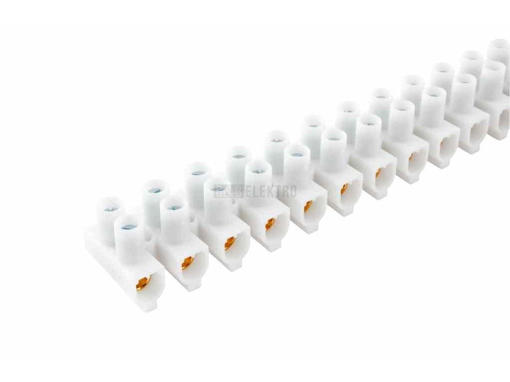 Svorkovnice instalační lámací EKL 4 BE-SVCE - 12 pólová, průřez vodiče 10-25mm2, barva bílá, mosazná, napětí 750V, jmenovitý proud 101A, rozměr 187,3x28x30mm.