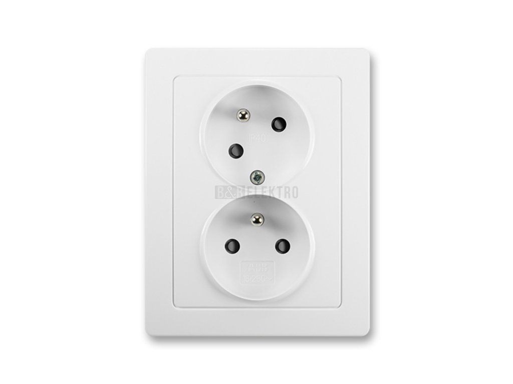 Swing®L zásuvka dvojnásobná s ochrannými kolíky, clonkami a natočenou dutinou, bezšroubové svorky 5513J-C02357 B1 jasně bílá ABB