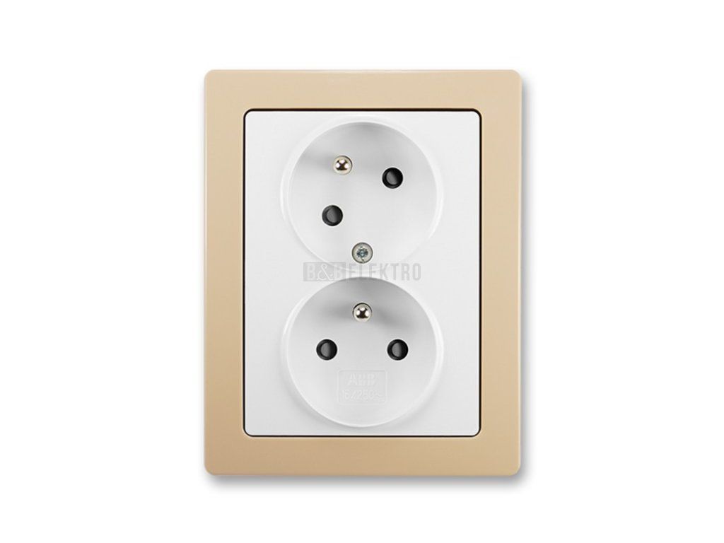 Swing®L zásuvka dvojnásobná s ochrannými kolíky, clonkami a natočenou dutinou, bezšroubové svorky 5513J-C02357 B1C3 jasně bílá/mocca ABB