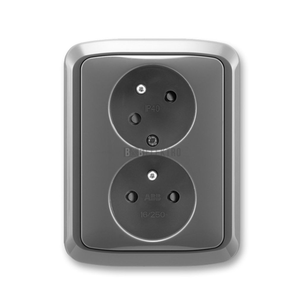 Zásuvka dvojnásobná, s ochrannými kolíky, s clonkami a s natočenou dutinou 5513A-C02357 S2, kouřová šedá