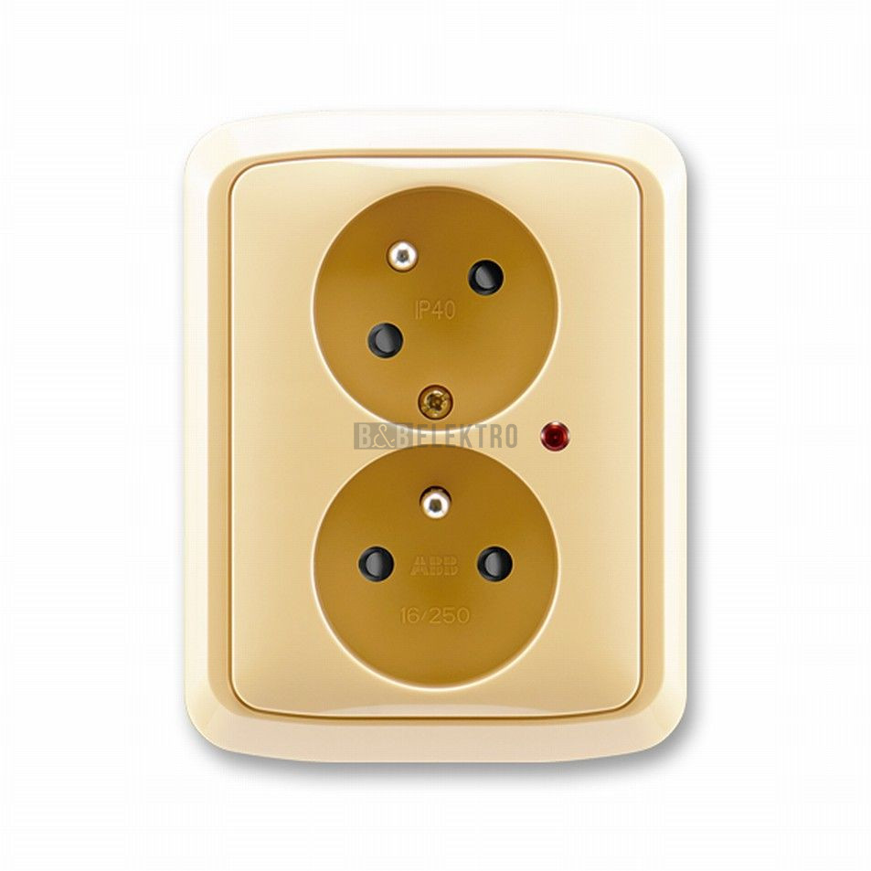 Zásuvka dvojnásobná, s ochrannými kolíky, s clonkami, s natočenou dutinou a s ochranou před přepětím 5593A-C02357 D, béžová