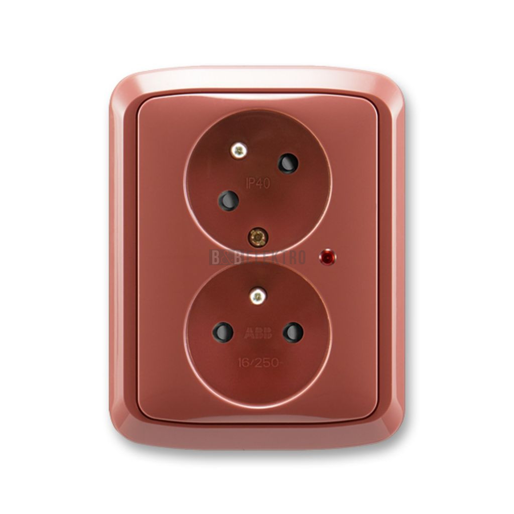 Zásuvka dvojnásobná, s ochrannými kolíky, s clonkami, s natočenou dutinou a s ochranou před přepětím 5593A-C02357 R2, vřesová červená