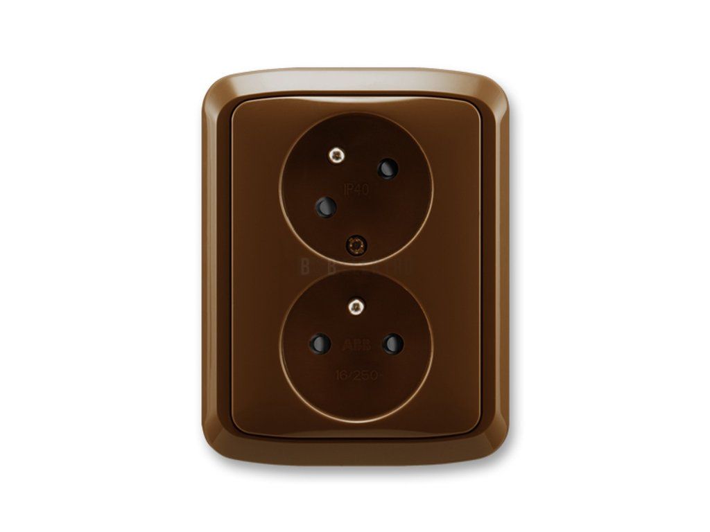 Zásuvka dvojnásobná, s ochrannými kolíky, s clonkami a s natočenou dutinou 5513A-C02357 H, hnědá